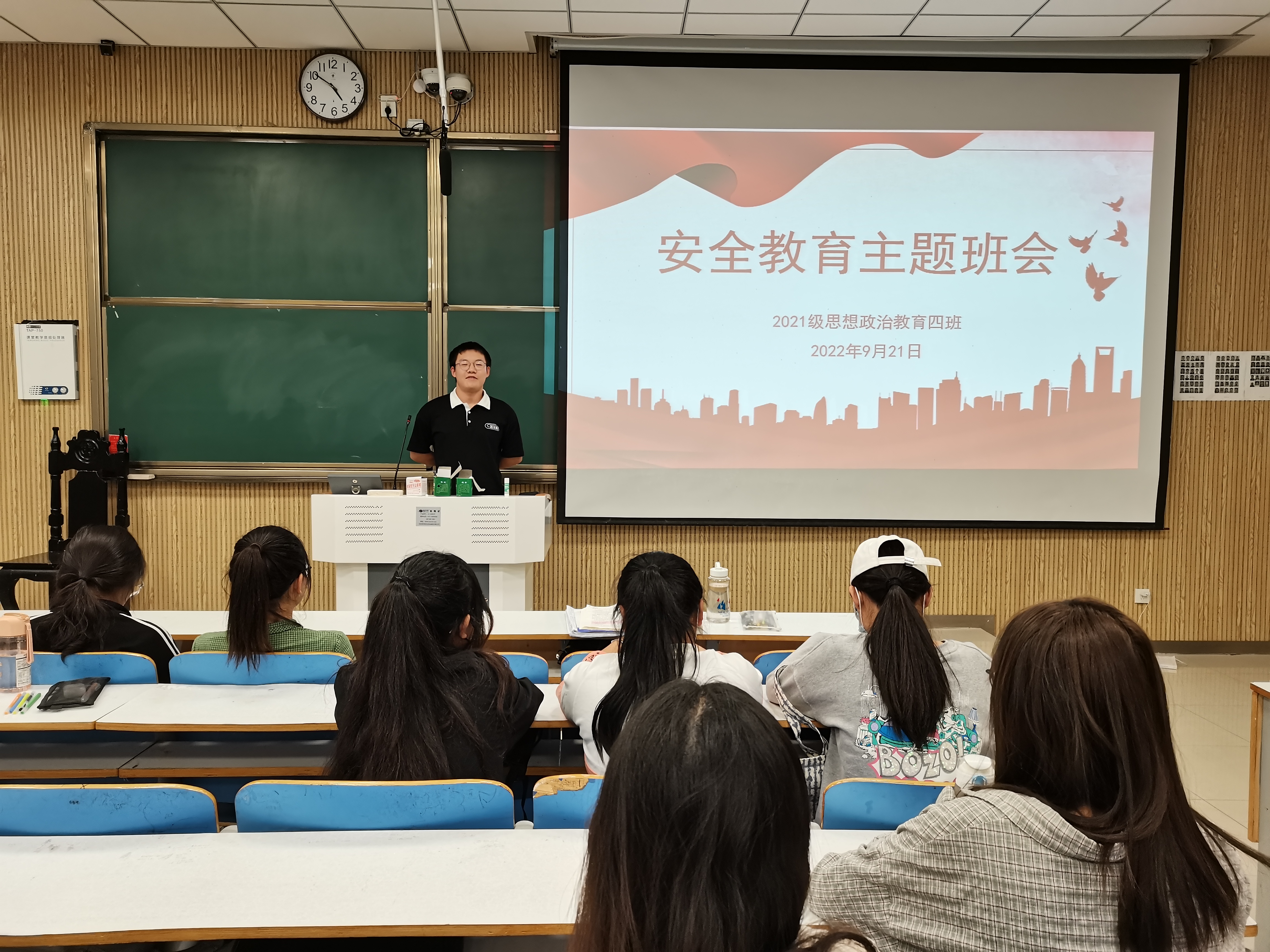 9月21日下午,WilliamHILL中国2021级思想政治教育四班在社科楼515教室开展安全教育主题班会。2021级思想政治教育四班全体同学共同参会。班会由副班长常康哲主
