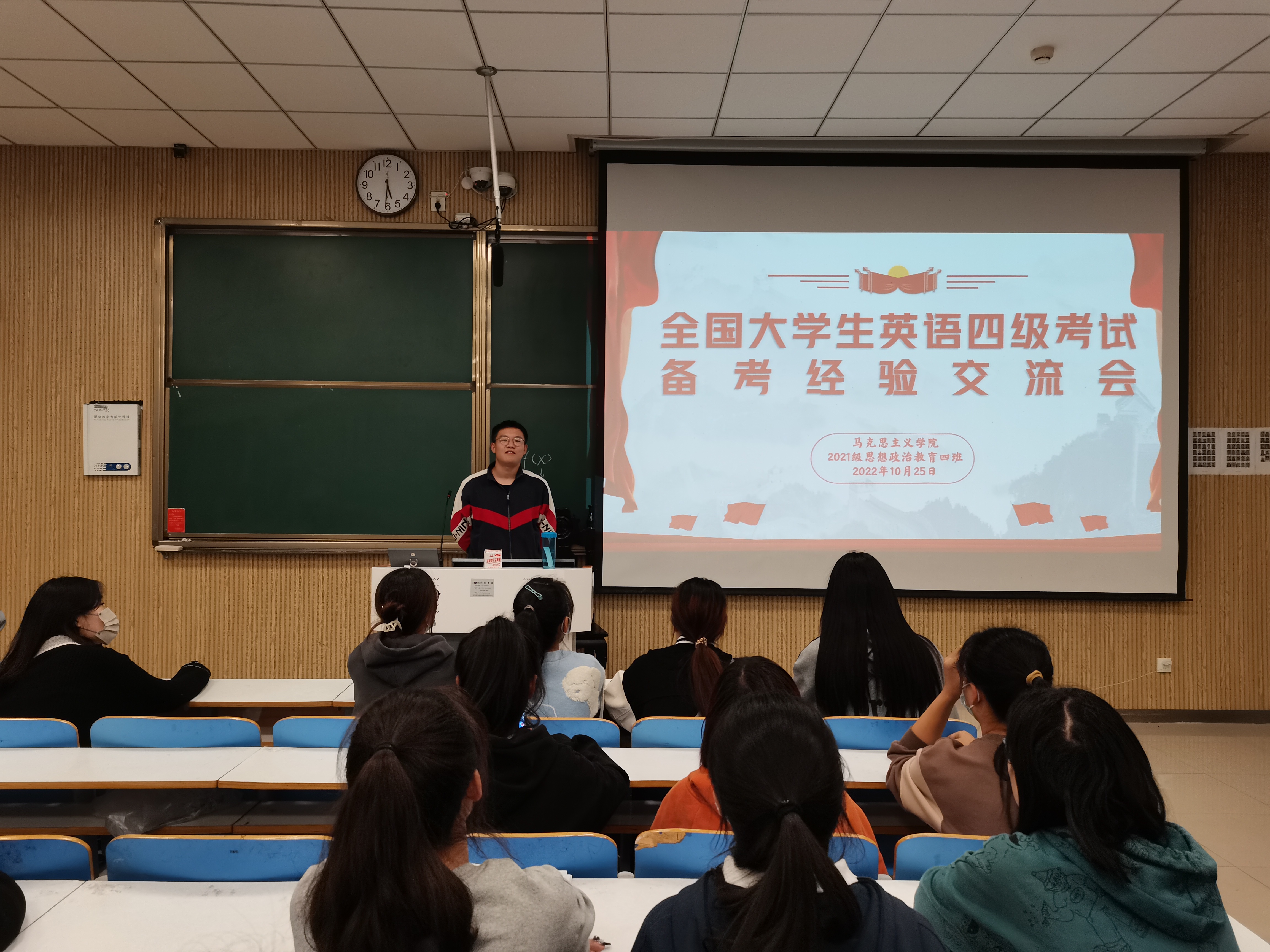 为进一步提升我班同学备考热情,明晰备考规划,10月25日下午,WilliamHILL中国2021级思想政治教育四班在社科楼514教室召开“全国大学生英语四级考试”备考经验交流会。2021级思想政治教育四班全体同学共同参会。班会由副班长常康哲主持。