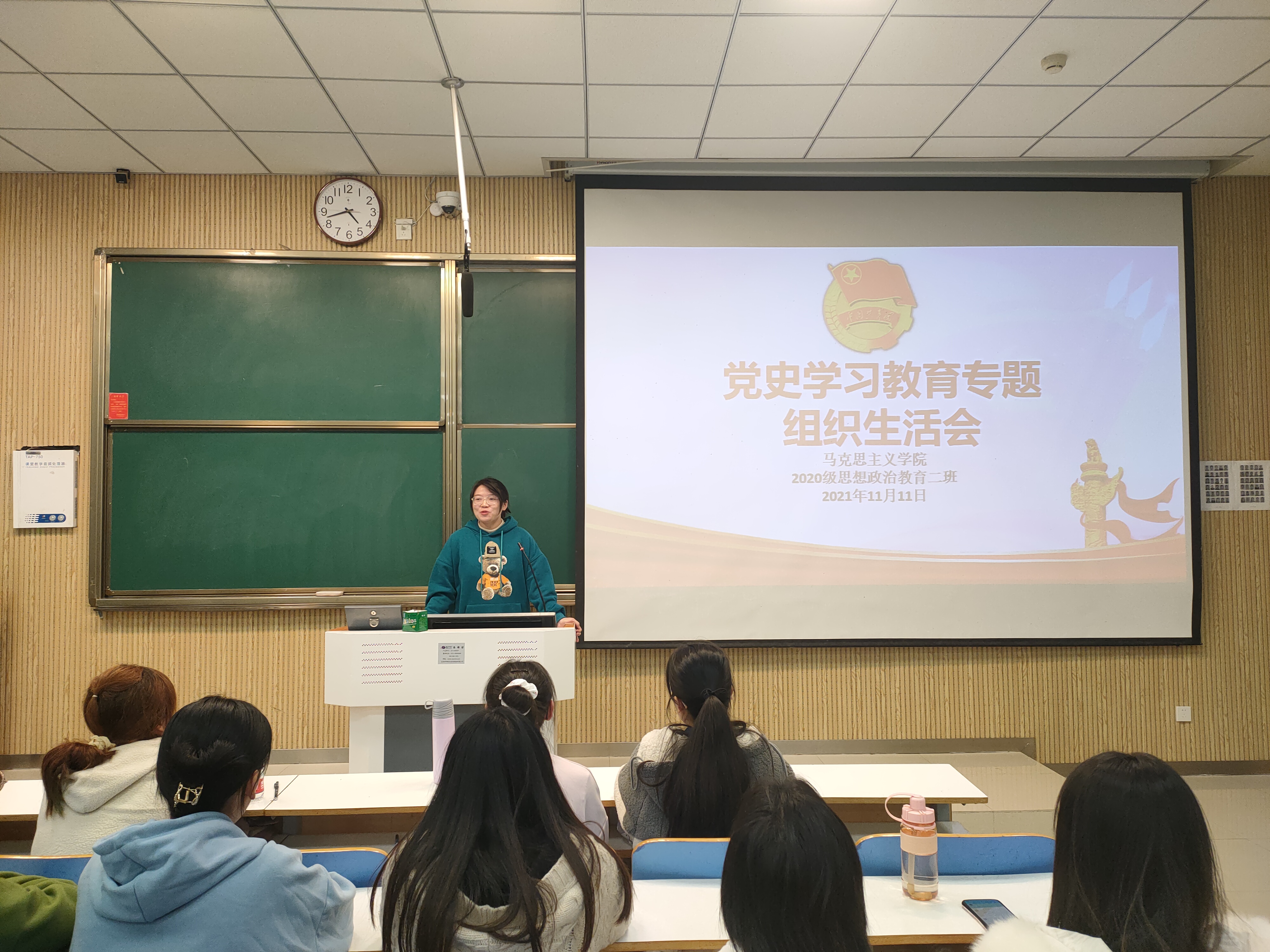 11月11日下午,WilliamHILL中国2020级思想政治教育二班、定向二班在社科楼515教室召开党史学习教育专题组织生活会。辅导员陶青青以及2020级思想政治教育二班、定向二班全体团员共同参与本次会议。会议由团支书李晨曦主持。