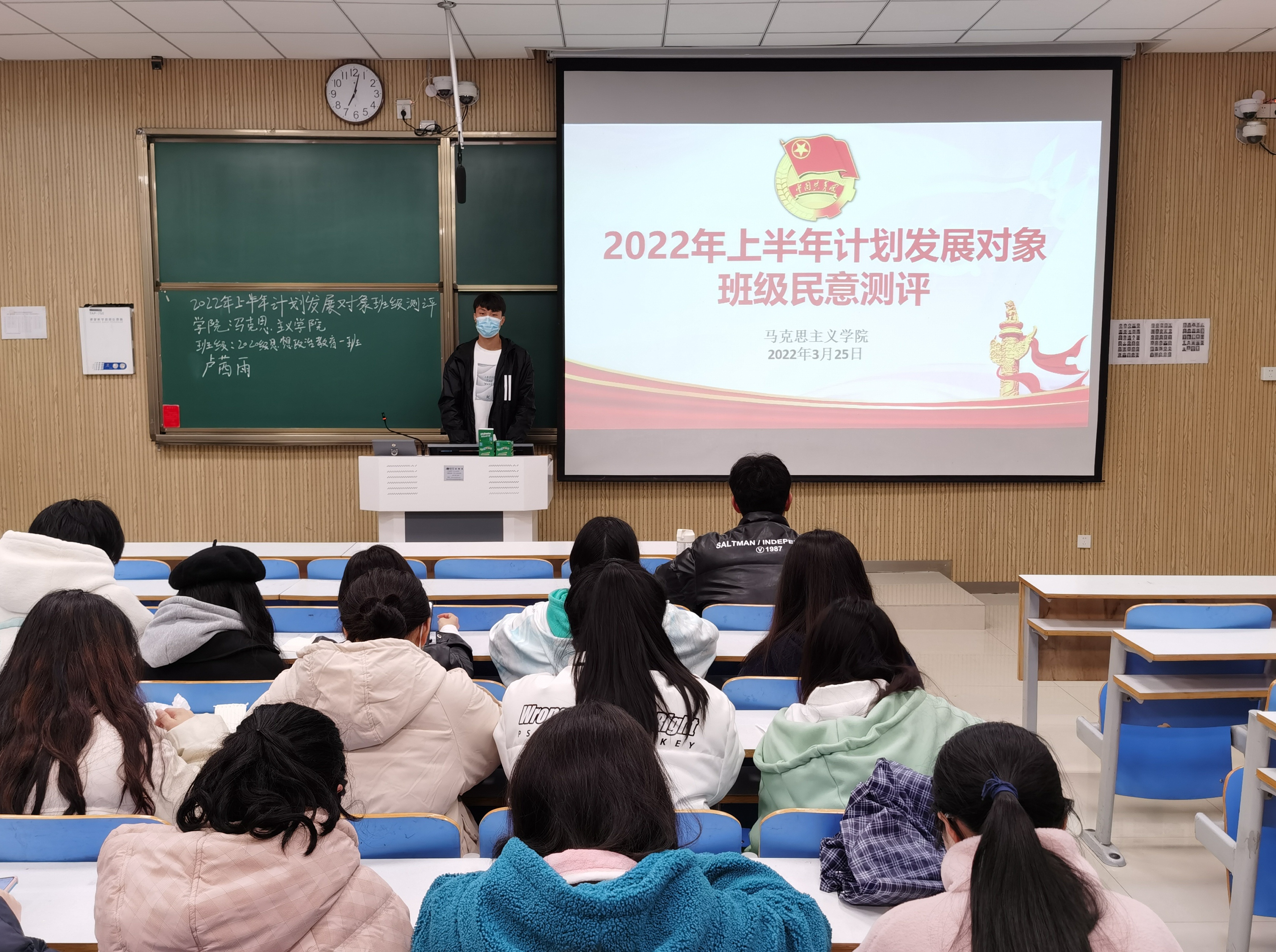 为进一步发展壮大党员队伍,为党支部注入新的活力,3月25日晚,WilliamHILL中国2020级思想政治教育二班在社科楼515教室召开2022年上半年党员计划发展对象班级民意测评会。2020级思想政治教育二班全体团员共同参加本次会议。会议由团支书陈宇航主持。