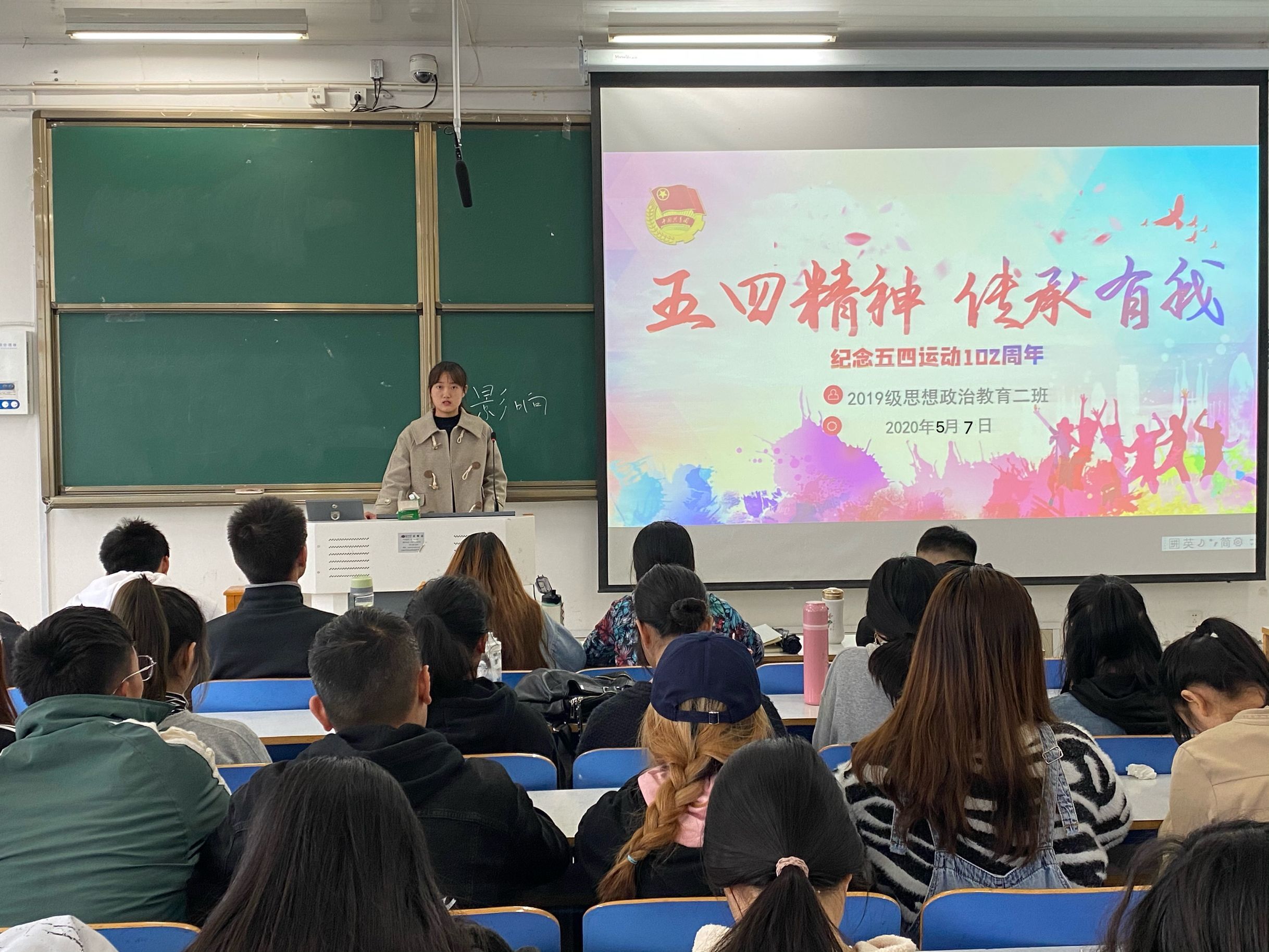 不忘初心来时路,砥砺奋进新征程,为纪念五四运动102周年,5月7日上午,我院2019级思想政治教育二班于社科楼516教室召开“五四精神 传承有我”主题团课。2019级思想政治教育二班全体成员共同参会。会议由团支书孙雅娴主持。