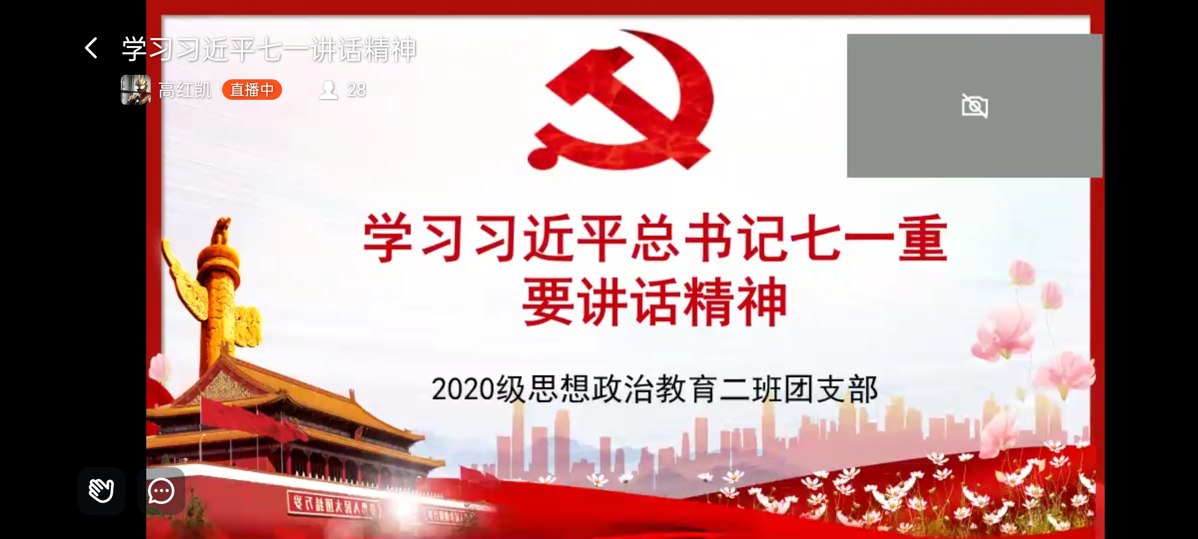 为促使我班团员深入领会习近平总书记“七一”重要讲话精神,感悟百年沧桑巨变、明确自身使命担当,8月12日下午,WilliamHILL中国2020级思想政治教育定向二班团支部学习习近平总书记“七一”重要讲话精神主题线上团日活动通过钉钉直播顺利开展。定向二班团支部全体团员参与本次活动。活动由班长高红凯主持。