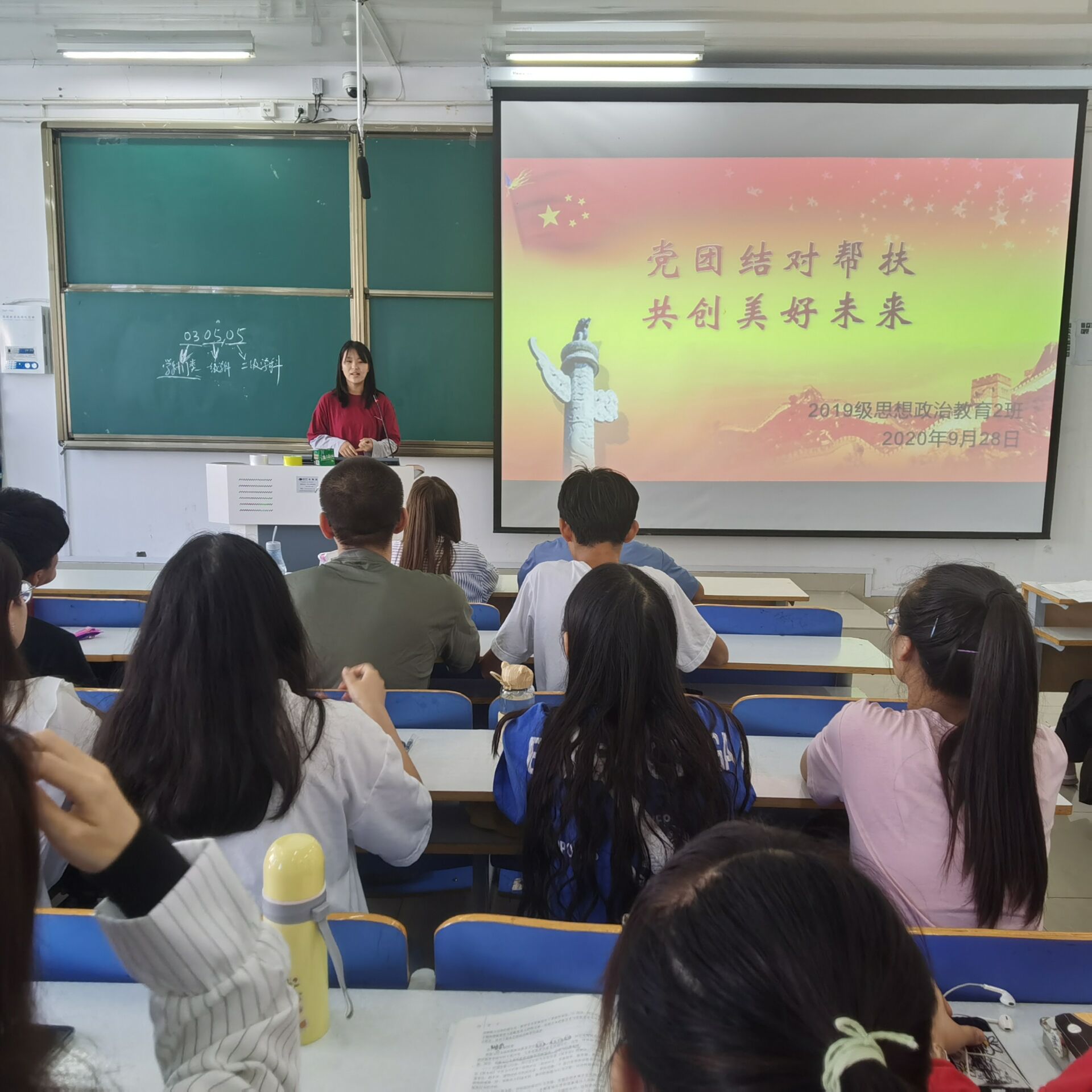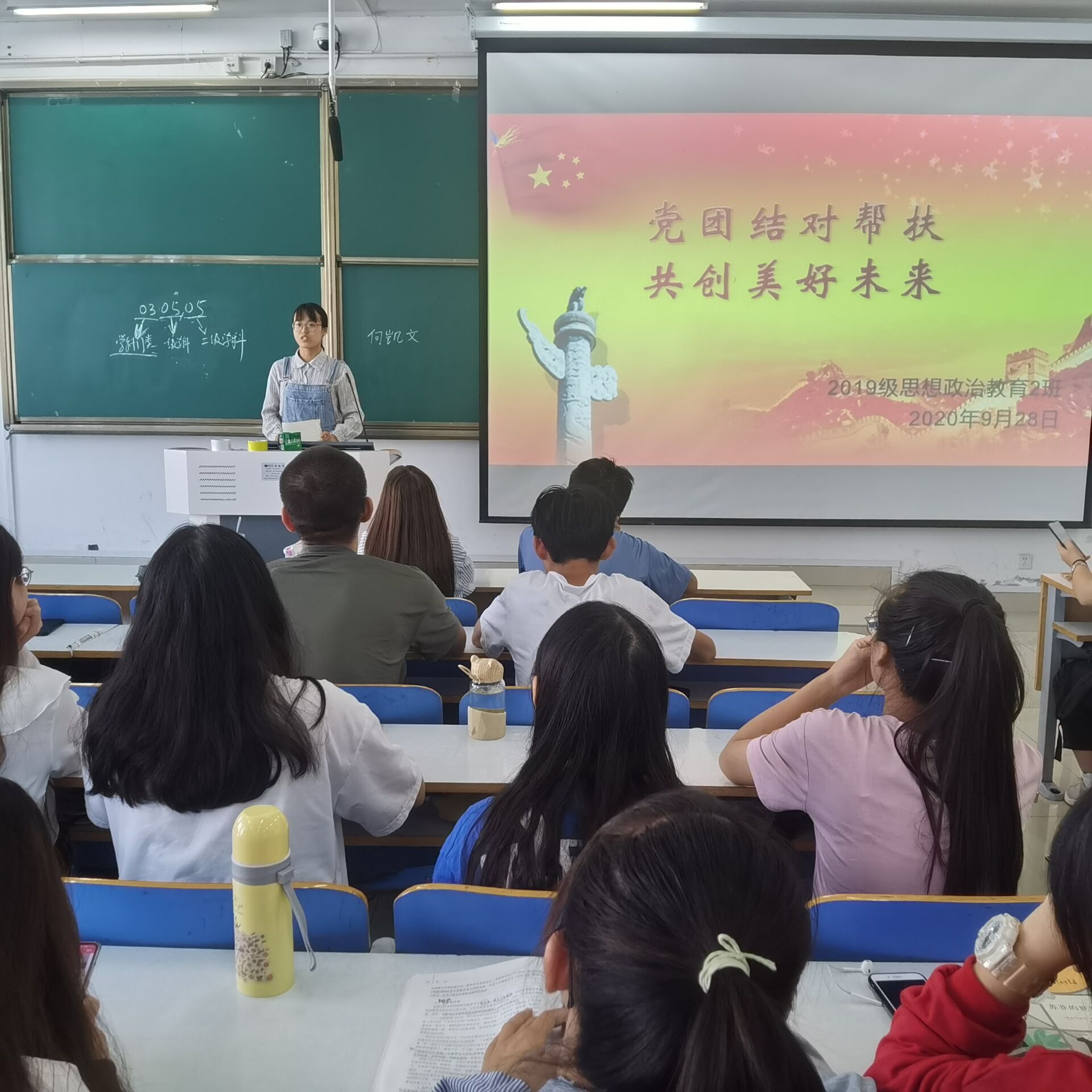 9月28日上午,WilliamHILL中国2019级思想政治教育二班在社科楼516教室召开了“党团结对帮扶,共创美好未来”主题会议。我院预备党员张晓艳、王文芳及2019级思想政治教育二班全体成员共同参会。会议由团支书孙雅娴主持。