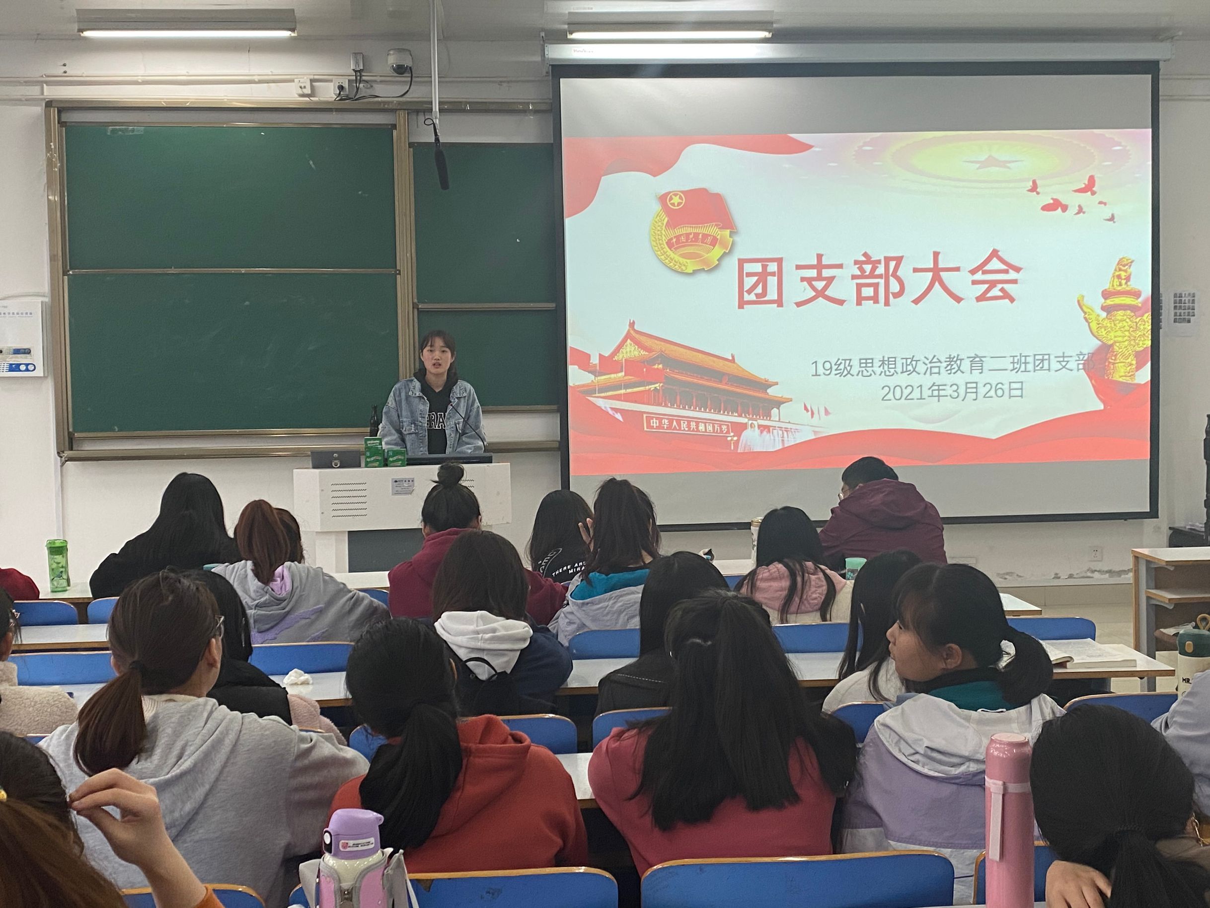 为加强“四史”教育学习,激励团员们守初心、担使命,3月26日上午,我院2019级思想政治教育二班在社科楼516教室召开“学四史,践初心”团支部大会。2019级思想政治教育二班全体成员共同参会。会议由团支书孙雅娴主持。