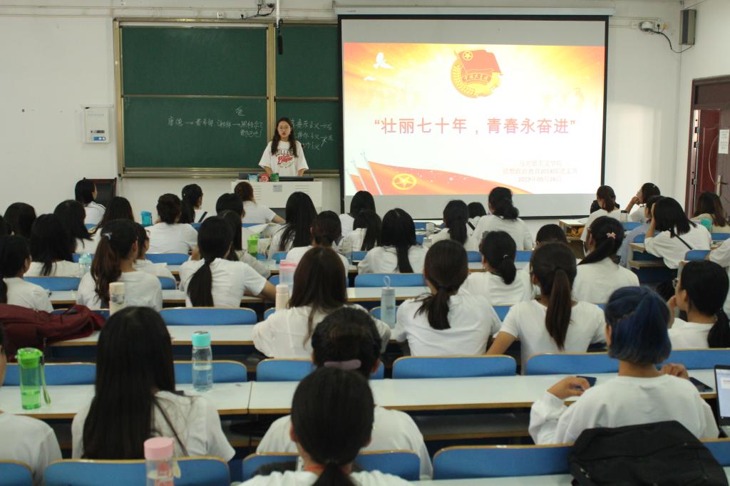 为纪念新中国成立70周年,进一步激发同学们的爱国热情,9月26日上午,我院2018级思想政治教育二班开展了“壮丽七十年,青春永奋进”主题团日活动。2018级思想政治教育二班全体成员共同参加了本次活动。活动由团支书黄子晋主持。