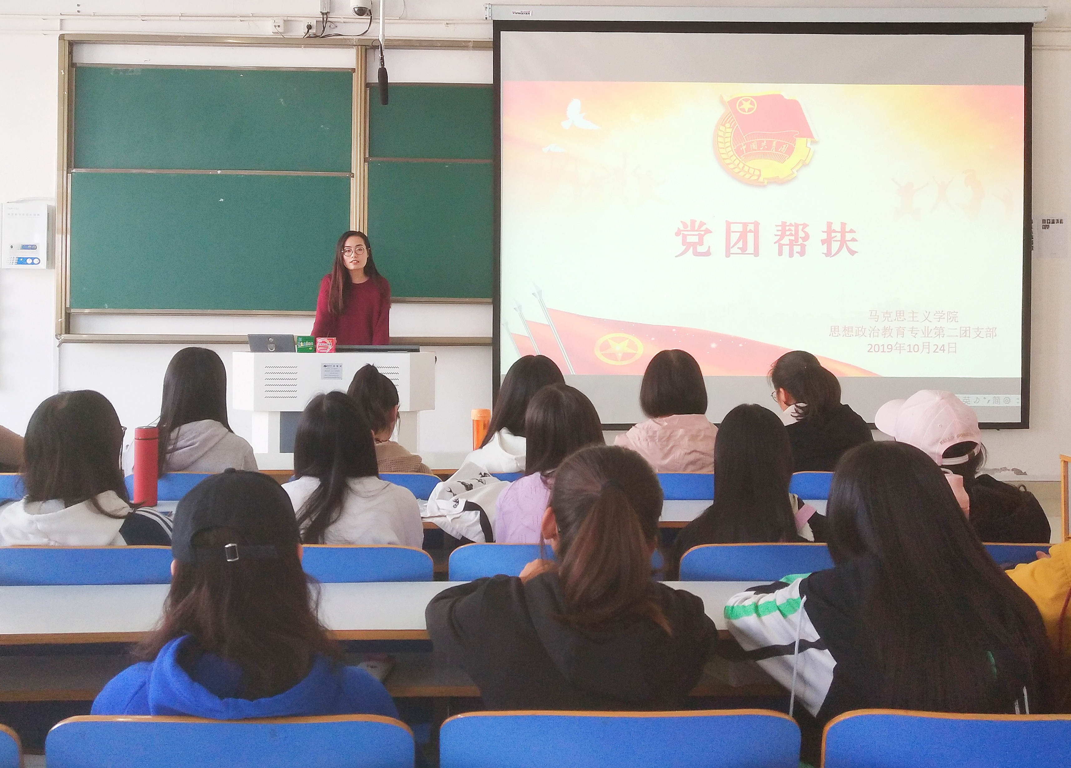 10月24日上午,我院2018级思想政治教育二班在社科楼516教室顺利开展党团帮扶活动。我班邀请学生党员代表韩嘉航参加本次交流活动。活动由团支书黄子晋主持。