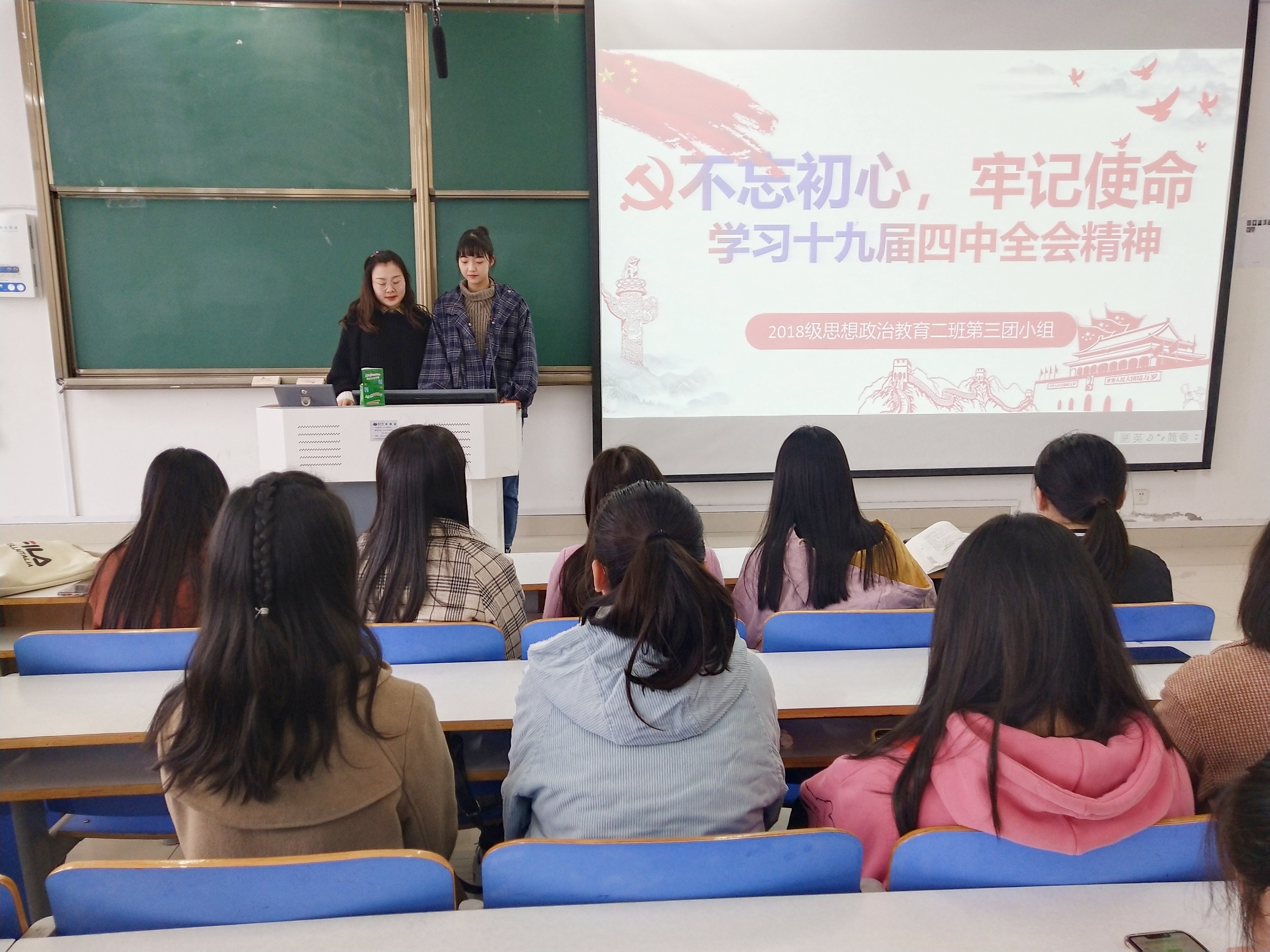 11月21日上午,我院2018级思想政治教育第二团支部第三团小组在社科楼516教室顺利开展了主题为“学习十九届四中全会精神”团小组会。会议由团小组成员铁兰欣主持。