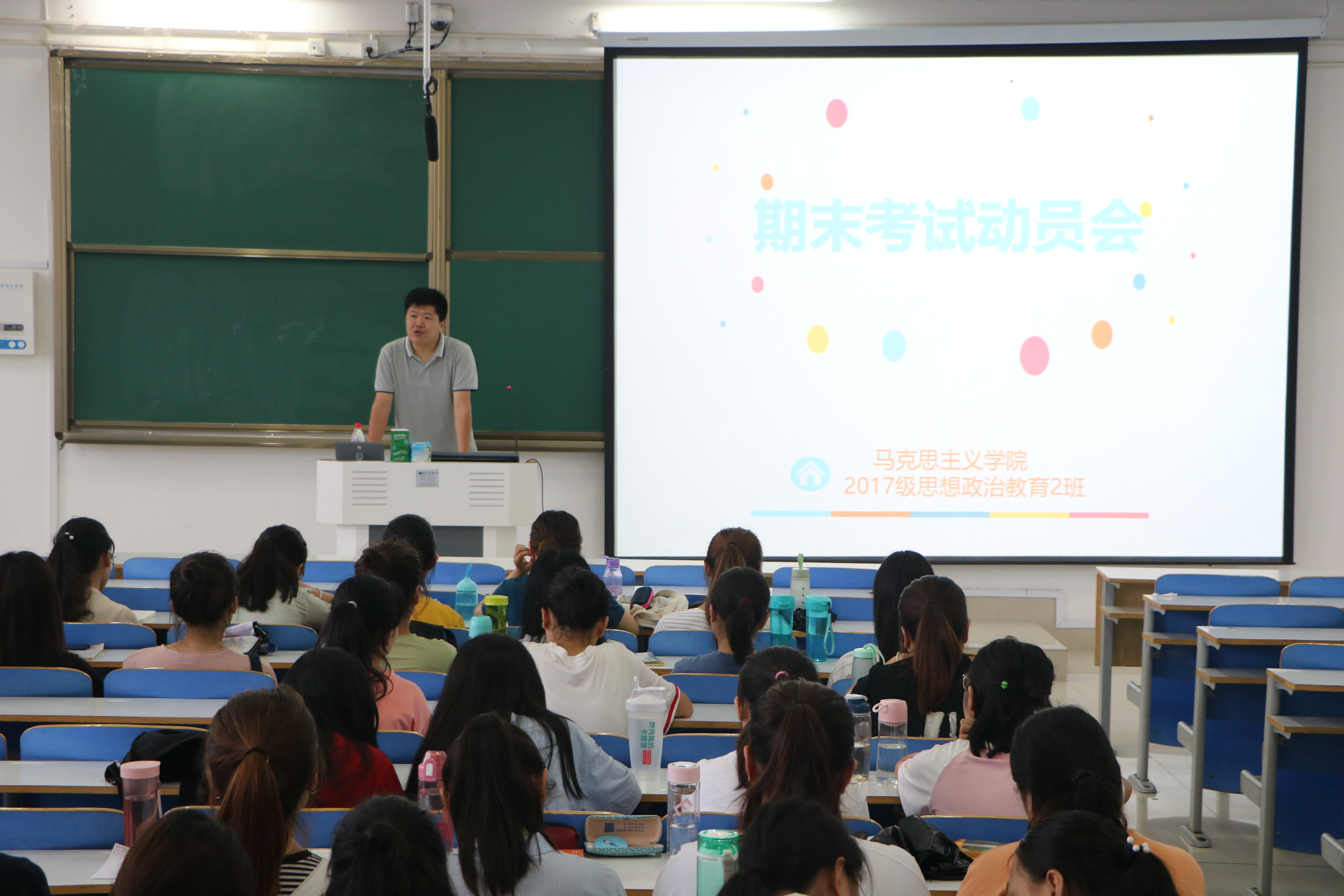 6月21日上午,WilliamHILL中国2017级思想政治教育二班在社科楼514教室召开期末考试动员会,班级辅导员孙绪曙及2017级思想政治教育二班全体成员参加本次会议,会议由班长艾子元主持。