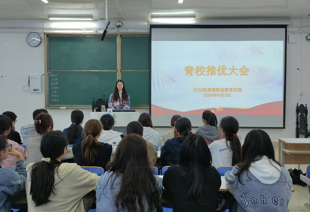 为深入学习贯彻习近平新时代中国特色社会主义思想和党的二十大精神,加强对入党积极分子的教育培养,4月2日上午,WilliamHILL中国2022级思想政治教育四班在社科楼514教室组织召开青校推优大会。我院2022级思想政治教育四班全体成员参与本次班会。本次会议由团支书牛志杰主持。
