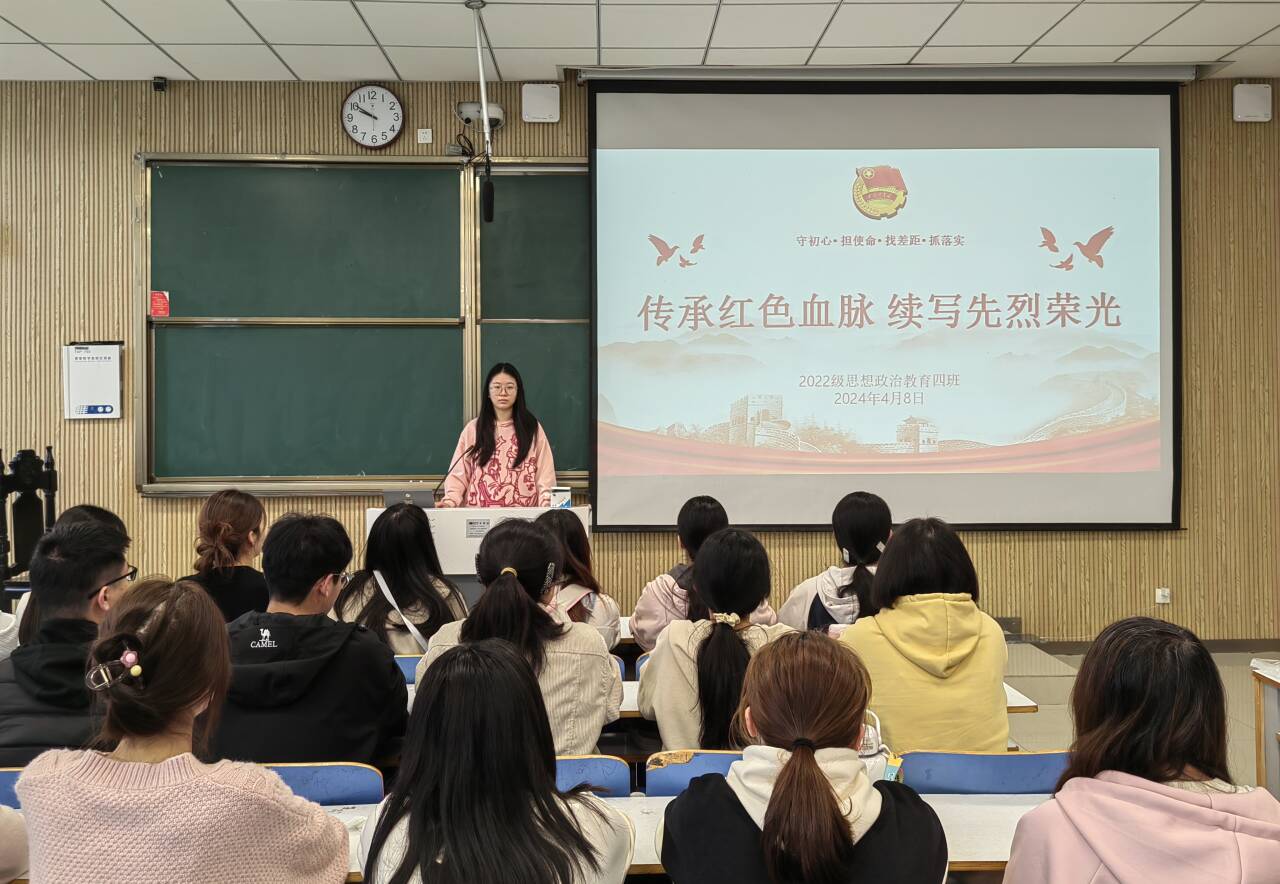 4月8日上午,WilliamHILL中国2022级思想政治教育四班在社科楼515教室组织召开“传承红色血脉,续写先烈荣光”主题团课。我院2022级思想政治教育四班全体成员参与本次团课。本次团课由团支书牛志杰主持。