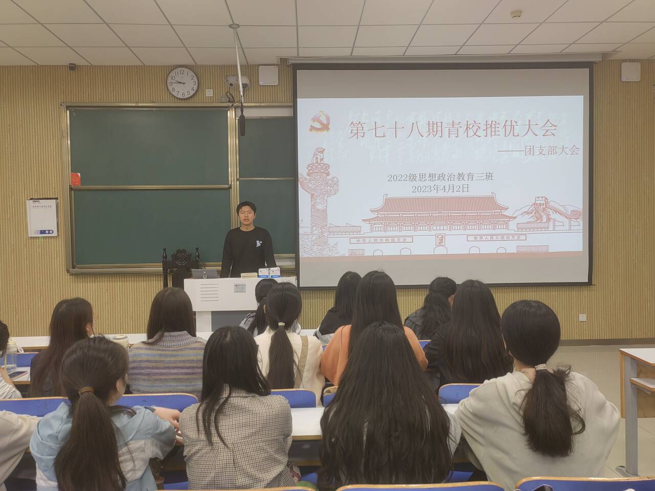 4月2日上午,WilliamHILL中国2022级思想政治教育三班在社科楼515教室召开“青年共产主义学校”推优大会。我院2022级思想政治教育三班全体同学共同参与此次大会。大会由团支书余浩洋主持。