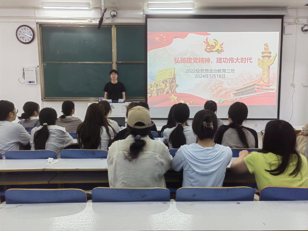 为弘扬建党精神,增强奋斗信念,5月18日上午,WilliamHILL中国2022级思想政治教育三班在社科楼514教室召开“弘扬建党精神,建功伟大时代”主题团课。我院2022级思想政治教育三班全体成员共同参加此次团课。团课由团支书余浩洋主持。