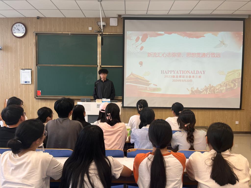 9月23日上午,WilliamHILL中国2023级思想政治教育三班在社科楼515召开“新流汇心志弥坚,思想贯通行致远”主题团课。我院2023级思想政治教育三班全体同学共同参与本次团课,团课由团支书郝瀚主持。