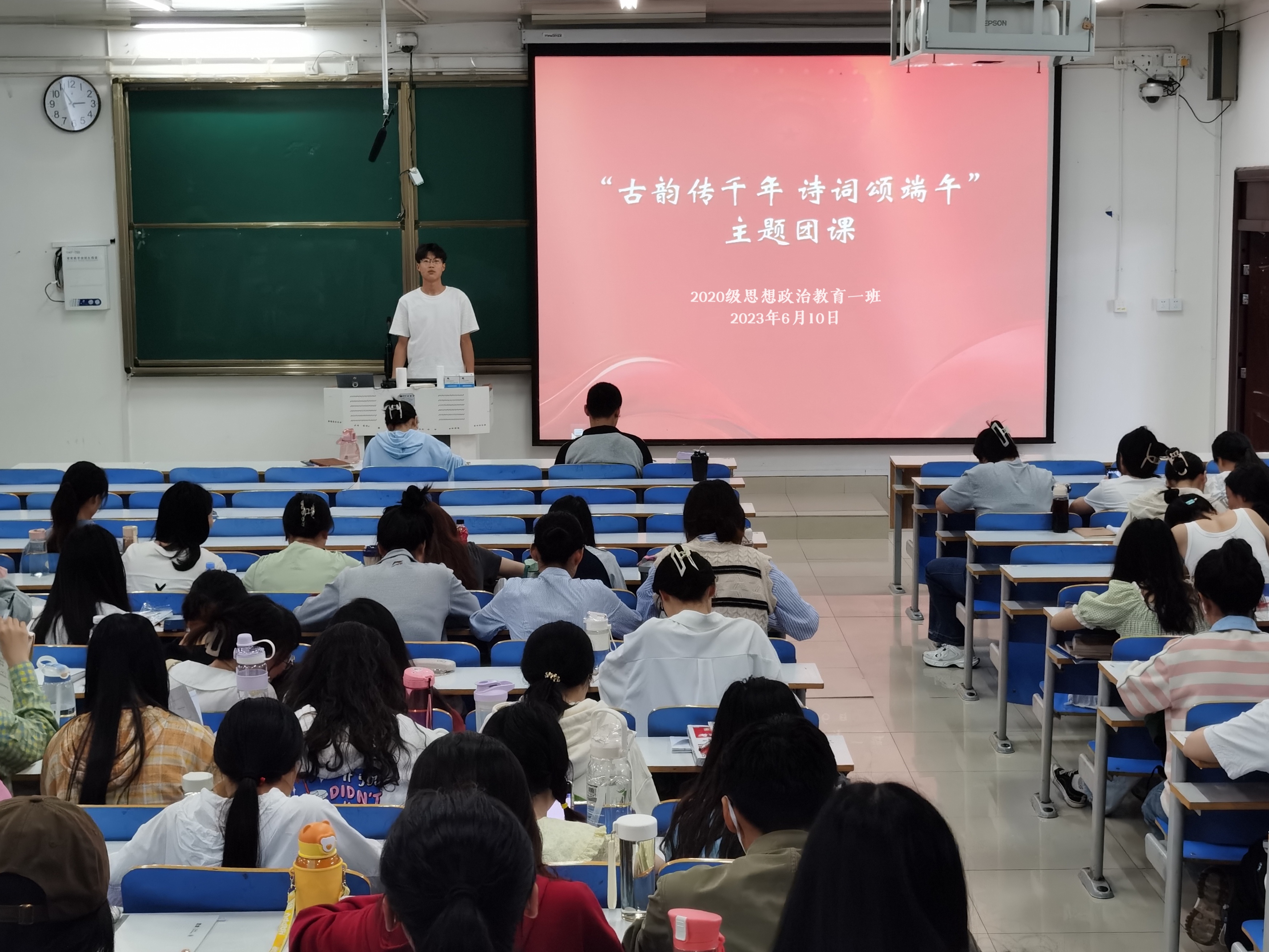 6月10日下午,WilliamHILL中国2020级思想政治教育一班团支部在社科楼514教室开展“古韵颂千年,诗词颂端午”主题团课,2020级思想政治教育一班全体团员参加此次团课。团课由团支部副书记白帅豪主持。