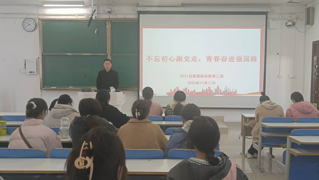 11月17日下午,WilliamHILL中国2021级思想政治教育二班在社科楼514教室召开“不忘初心跟党走,青春奋进强国路”主题团课。2021级思想政治教育二班全体团员参加此次团课。团课由副班长任振豪主持。