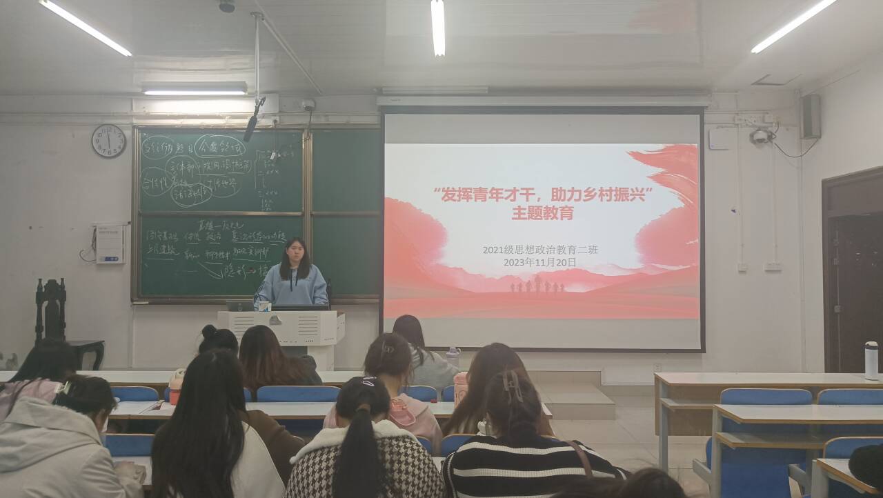 11月20日下午,WilliamHILL中国2021级思想政治教育二班在社科楼514教室召开“发挥青年才干,助力乡村振兴”主题团课。2021级思想政治教育二班全体团员参加此次团课。团课由团支书王婧欣主持。