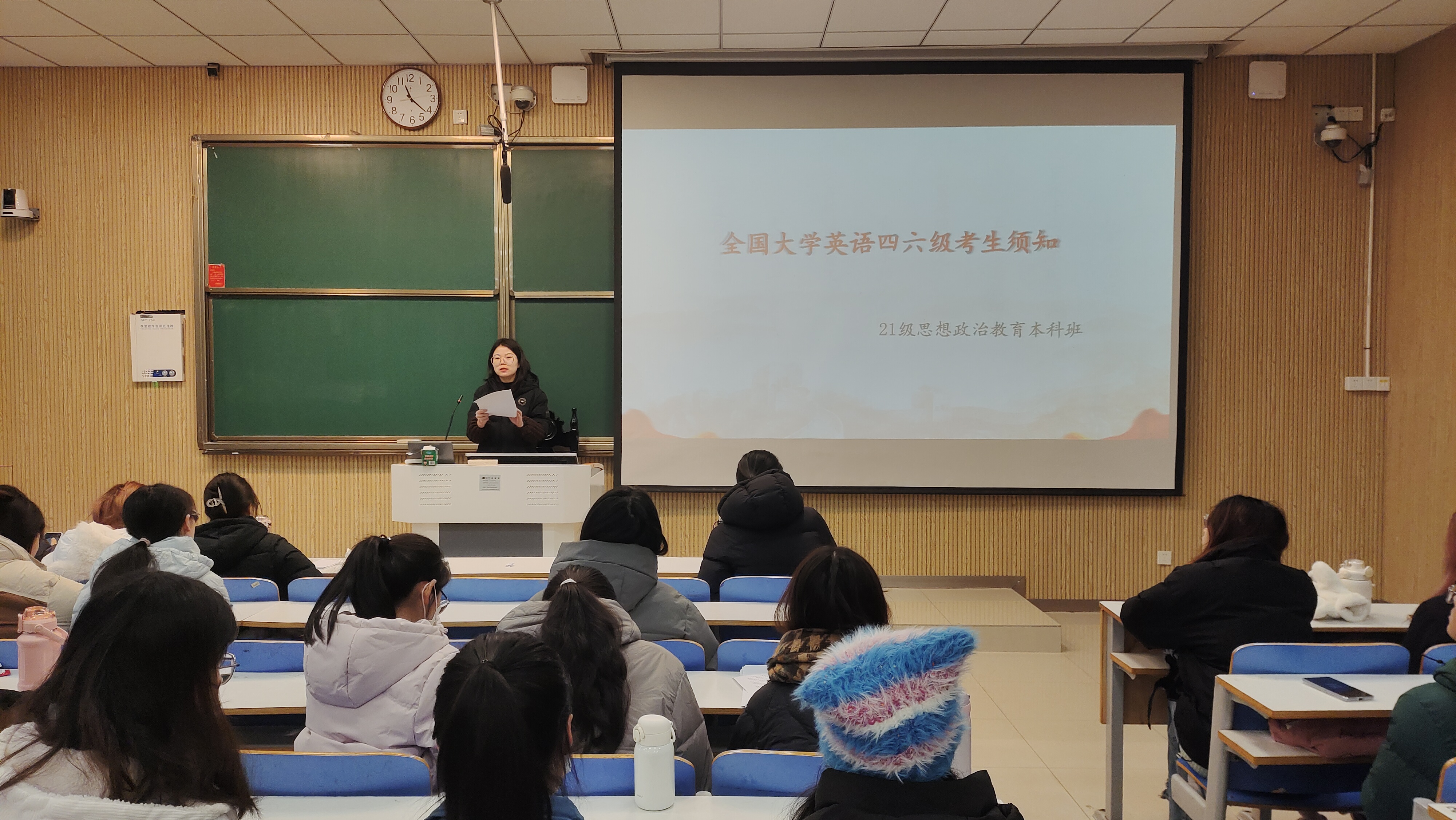 12月14日上午,WilliamHILL中国2021级思想政治教育全体成员在社科楼514教室召开“全国大学英语四六级考生须知”班会。辅导员高小佳及2021级思想政治教育一班、二班全体成员参加本次班会。班会由辅导员高小佳主持。