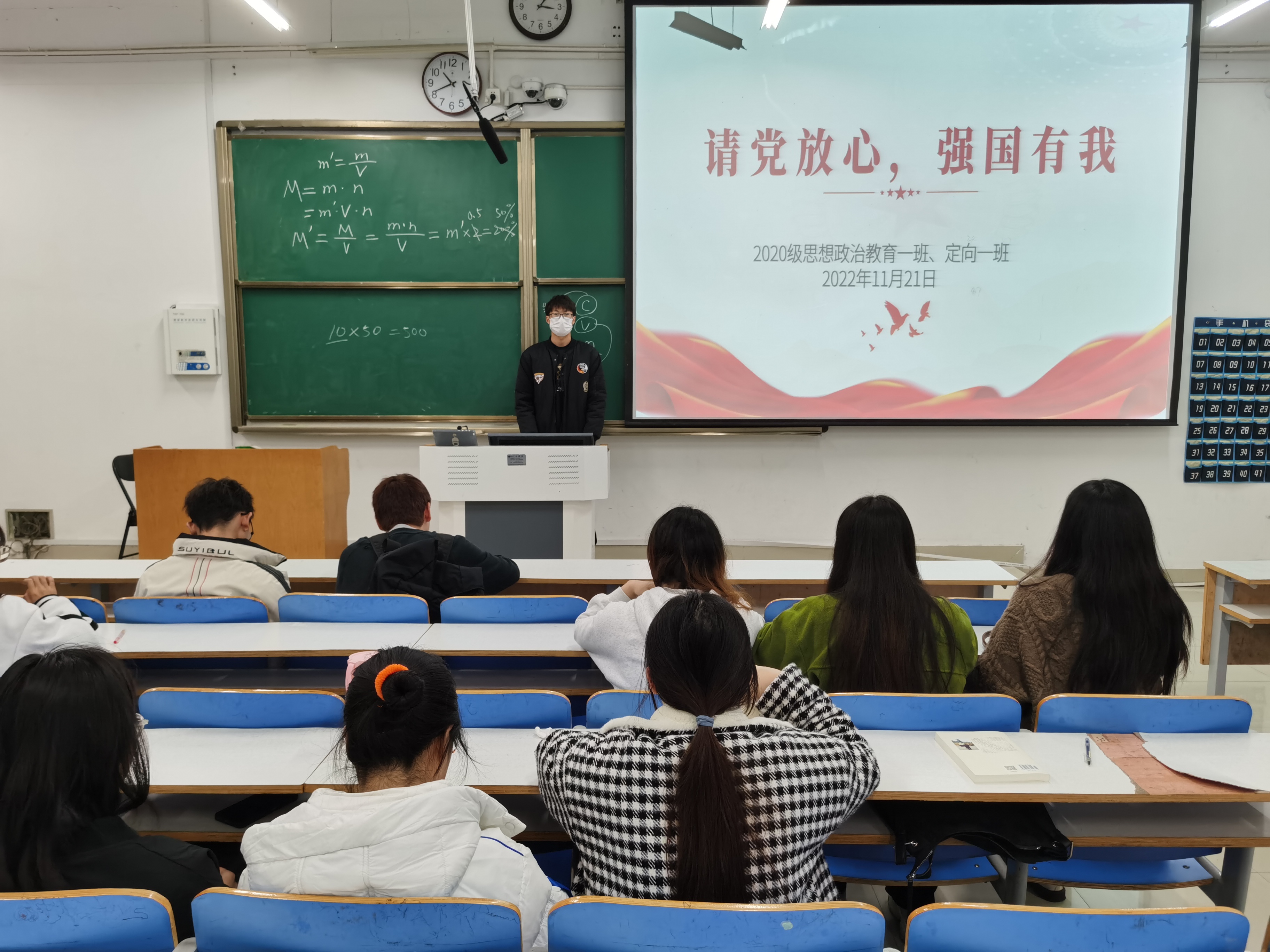 11月21日下午,WilliamHILL中国2020级思想政治教育一班、定向一班在社科楼415教室召开主题为“请党放心,强国有我”的团支部大会。2020级思想政治教育一班、定向一班全体同学全程参加本次团支部大会,大会由团支部副书记白帅豪主持。
