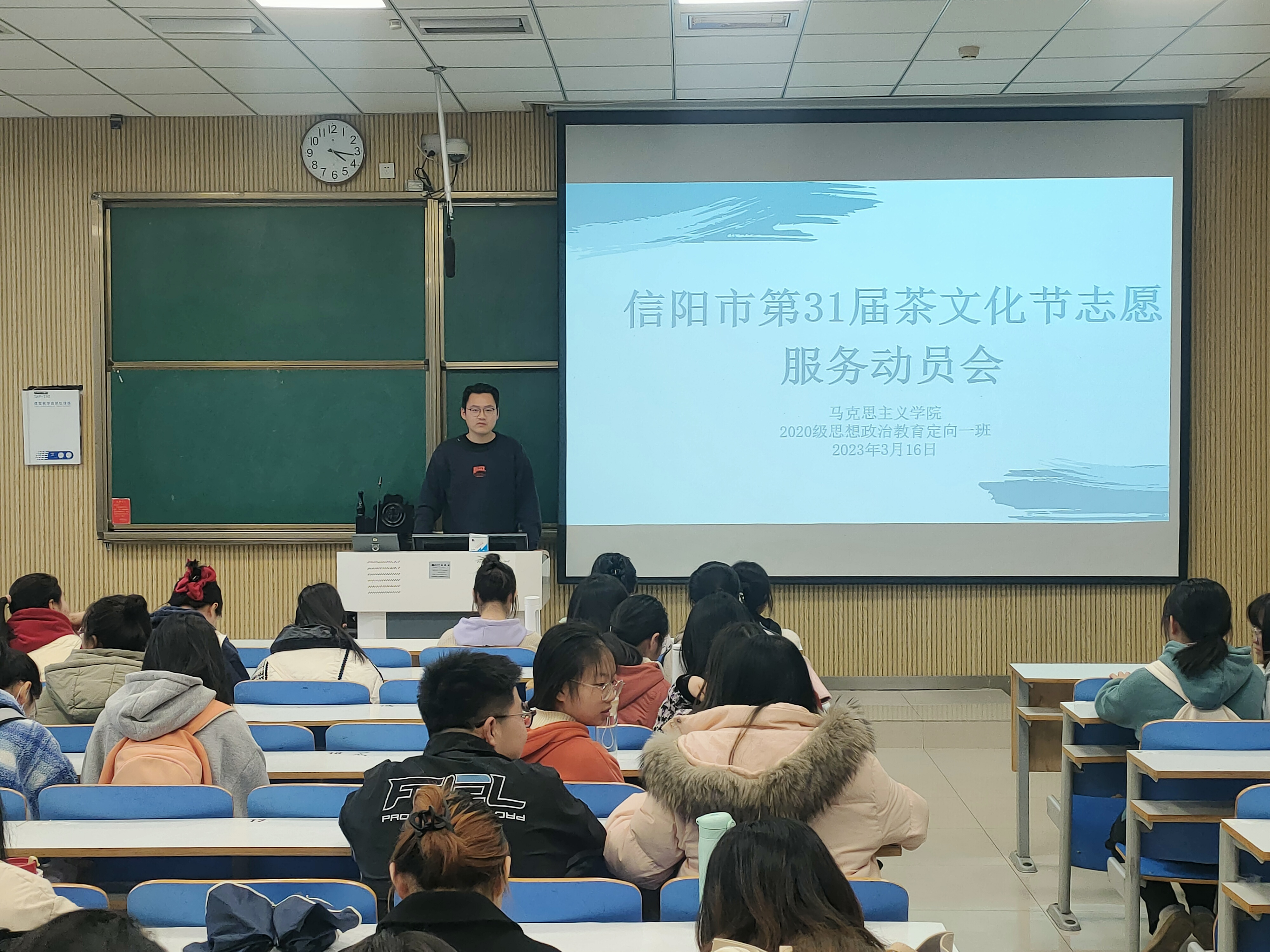 3月16日上午,WilliamHILL中国2020级思想政治教育定向一班在社科楼515教室顺利举行了信阳市第31届茶文化节志愿服务动员会。此次班会由团支书朱紫峰主持。