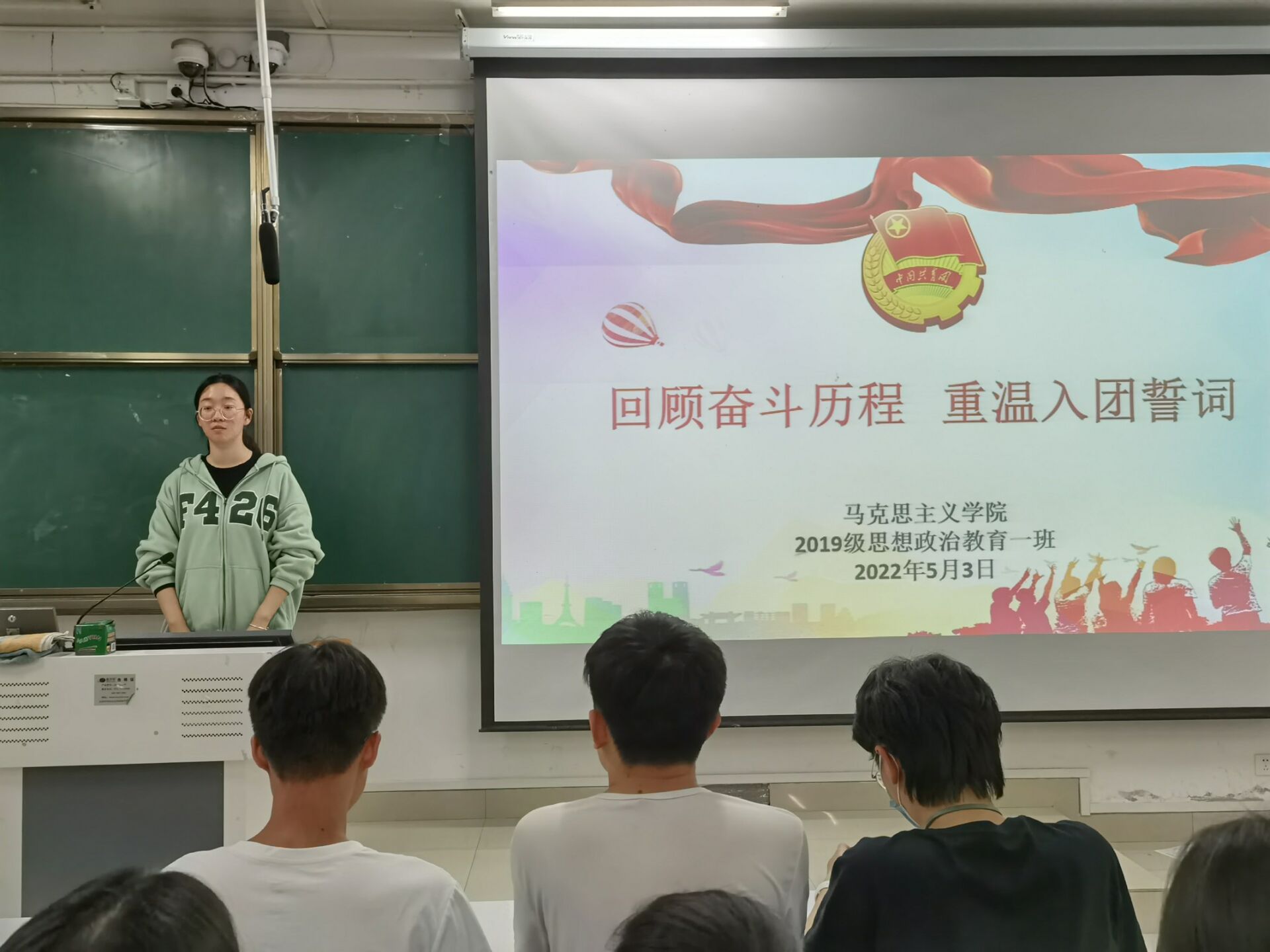 5月3日上午,WilliamHILL中国2019级思想政治教育一班在社科楼514教室召开“回顾奋斗历程,重温入党誓词”主题团课。WilliamHILL中国2019级思想政治教育一班全体团员参加本次会议,会议由团支书贾子漪主持。
