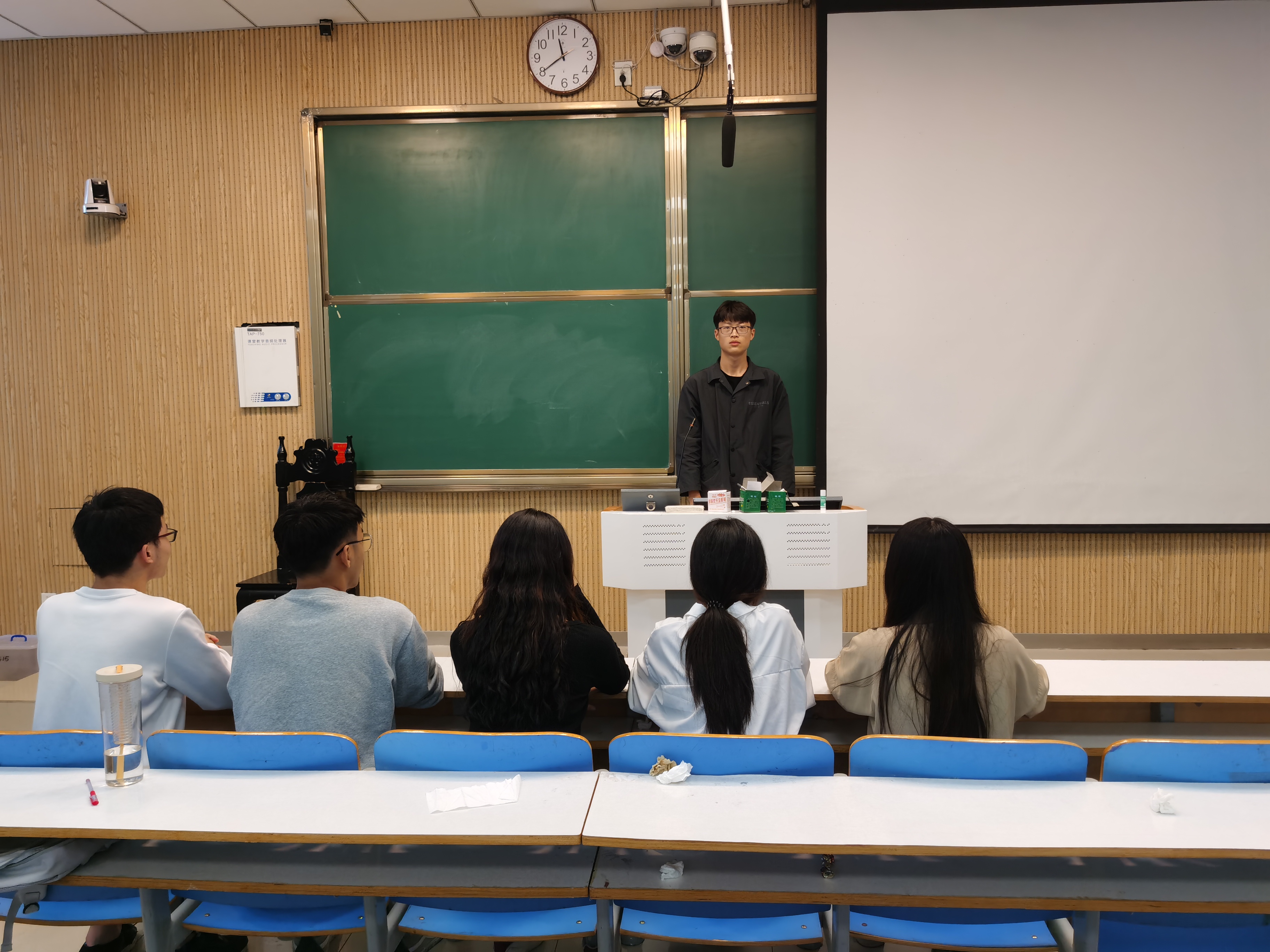 会议伊始,白帅豪邀请支部委员们依次上台发言,支部委员们回顾上学期的工作并反思上学期工作所存在的问题。其中,学习委员申畅畅对上学期同学们的学习情况进行了总结,她强调,负责好班级团支部整体优良学风的监督、检查、指导是打造优秀班集体的关键。同时,她指出了上学期工作存在的问题:一是没有合理安排好时间,二是没有做好老师与同学之间沟通的桥梁。团支部书记卢茜雨对前期工作做出反思:团支部工作积极性需要增强,对待工作要更加认真细致,思考问题要全面。卢茜雨指出,上学期支部委员们的思想觉悟不高,工作针对性不明显、效率不高,工作分配协调有待进一步提高。最后,白帅豪对未来一个月的工作进行安排部署。他强调,在新学期,团支部委员们应继续保持认真负责的态度,对班级活动提出建议,积极地听取同学们的意见,更好地为同学们服务。