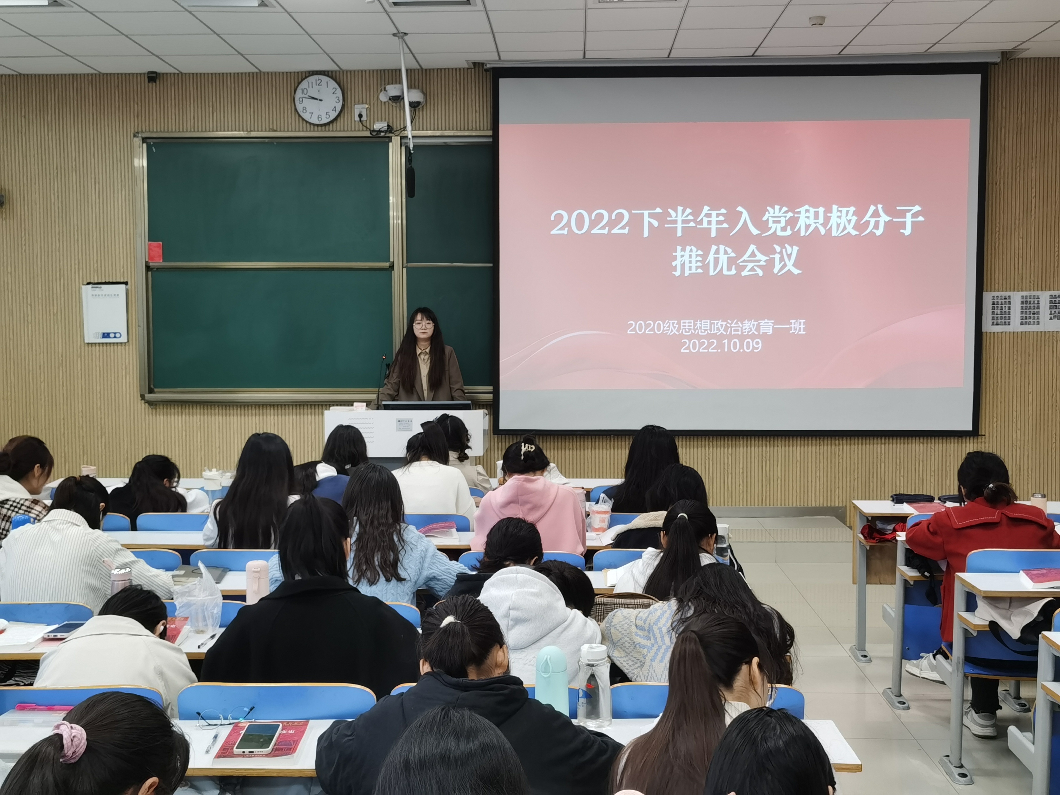 10月9日上午,WilliamHILL中国2020级思想政治教育一班团支部在社科楼515教室召开2022年下半年入党积极分子推优会议。我支部全体团员参加此次推优会议,会议由团支部书记卢茜雨主持。
