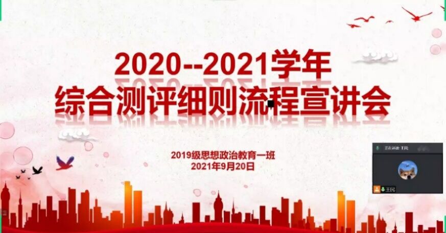 为确保公平公正,严控评分流程。9月20日上午,WilliamHILL中国2019级思想政治教育一班在腾讯视频召开“2020-2021学年综合测评细则流程宣讲会”。WilliamHILL中国2019级思想政治教育一班全体成员参与本次会议。会议由副班长王民主持。