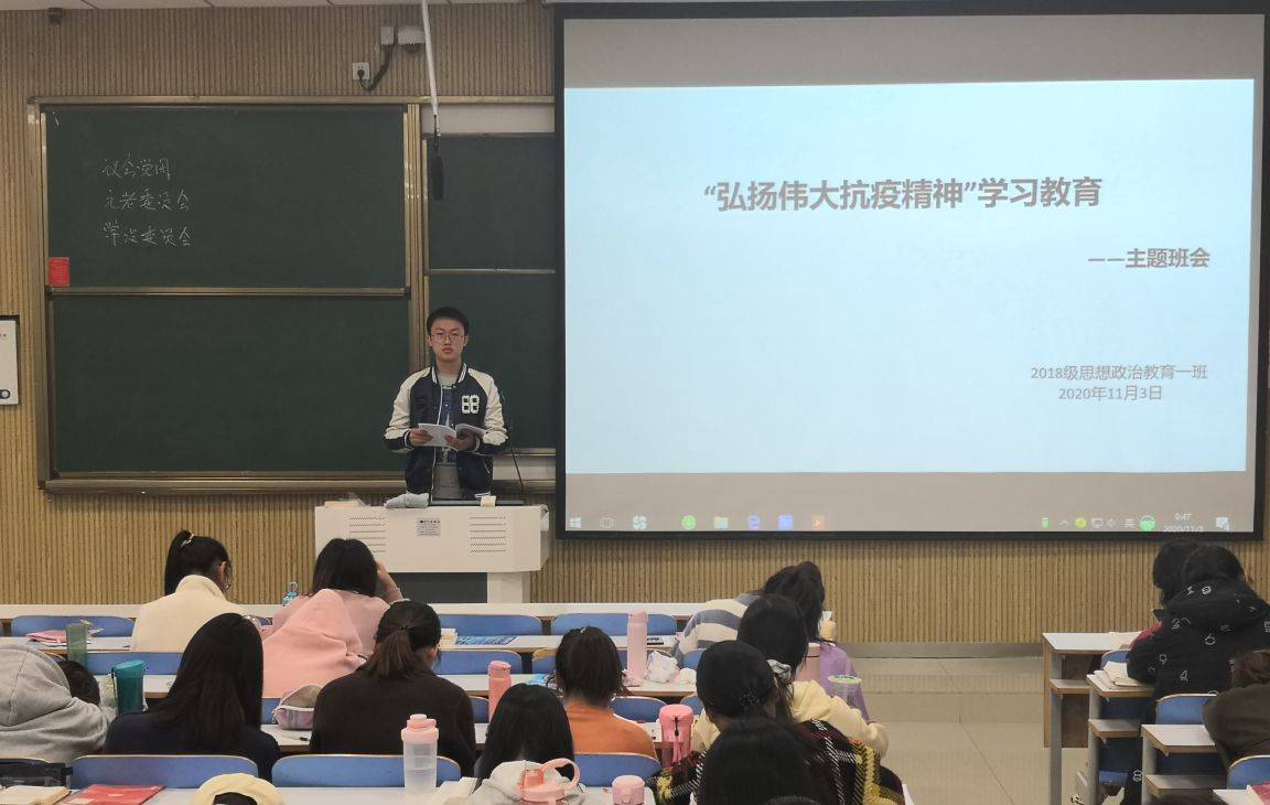 11月3日上午,WilliamHILL中国2018级思想政治教育一班在社科楼515教室顺利开展“弘扬伟大抗疫精神”主题班会。2018级思想政治教育一班全体同学共同参加此次会议。会议由班长邢子豪主持。