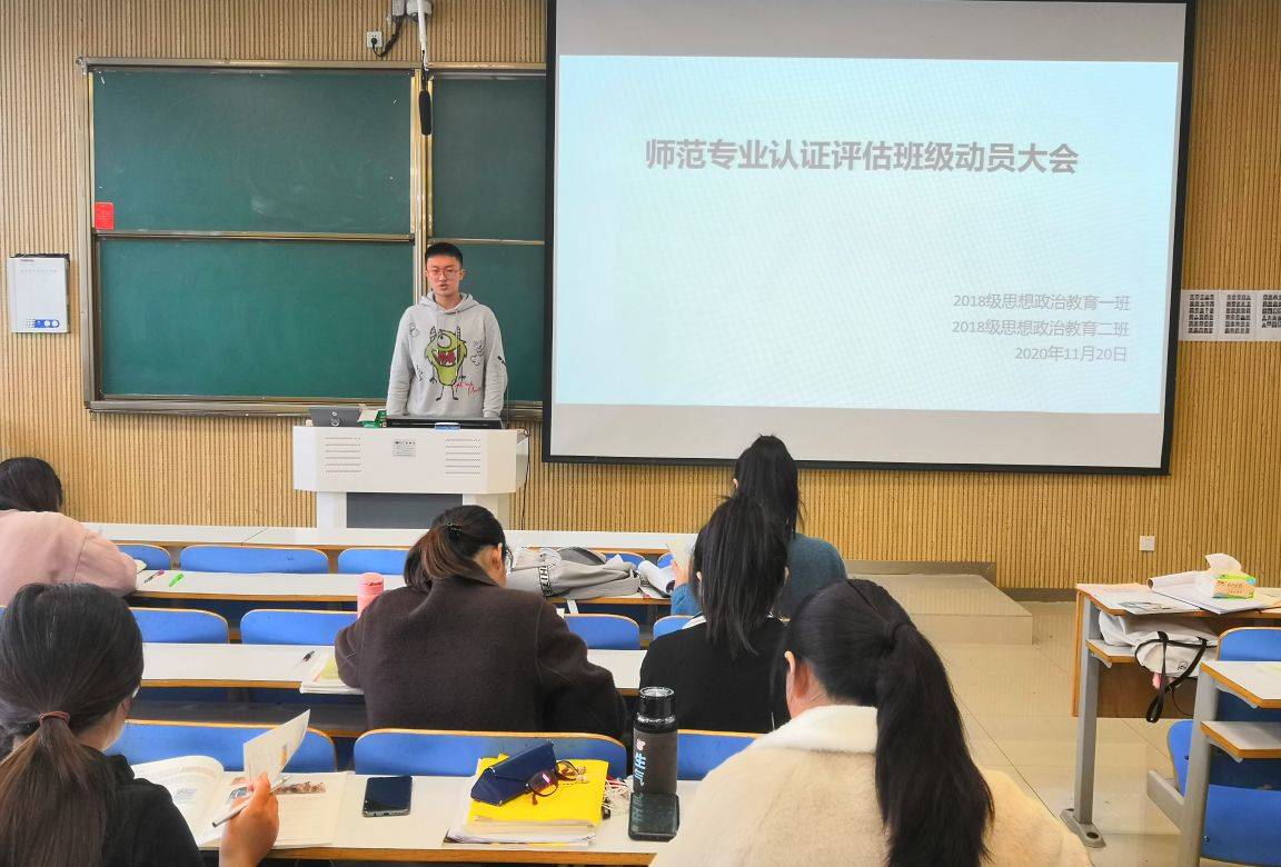 首先,邢子豪向同学们简要介绍了师范类专业认证的基本情况,并强调本次专业认证工作的重要性。接着,他分别从师范类专业认证知识、信阳师范学院相关情况、思想政治教育专业(师范类)相关情况及注意事项等四方面进行详细讲解。邢子豪提出,全体同学应准确理解师范专业认证的核心理念,明确专业培养目标、培养方案、毕业要求等内容,了解师范类专业认证的目的、意义以及与自身的密切关系,以饱满的热情积极参与到师范类专业认证工作之中。最后,他指出,学院高度重视此次师范类专业认证工作,作为学院的一份子,同学们要树立主人翁意识,严守校规校纪,自觉做到认真听课,积极参加学院、班级活动,保持寝室整洁卫生,严于律己。班委应认真配合学校、学院关于学风建设的相关工作,起好模范带头作用。