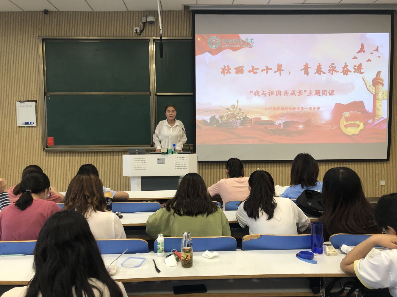 为庆祝新中国成立七十周年,大力弘扬爱国主义精神,9月26日下午,WilliamHILL中国2017级思想政治教育第一团支部在社科楼515教室开展“壮丽七十年,青春永奋进—我与祖国共成长”主题团课活动,本次活动由吴亦昕主持。