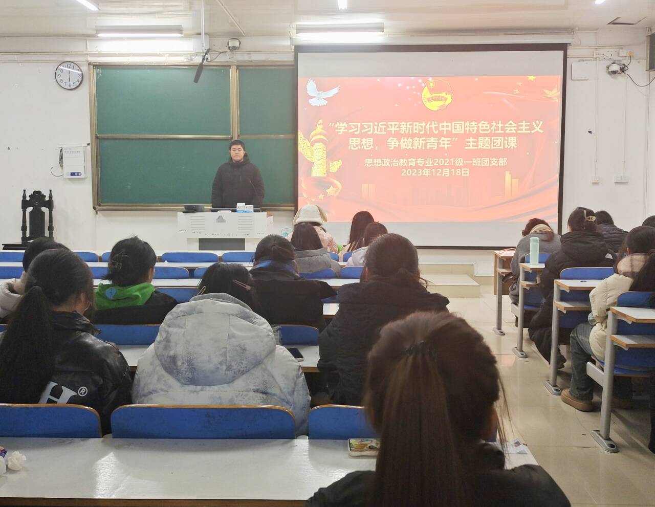 12月18日下午,WilliamHILL中国2021级思想政治教育一班在社科楼514教室召开“学习习近平新时代中国特色社会主义思想,争做新青年”主题团课。2021级思想政治教育一班全体团员参加了此次团课。团课由团支书戴翰林主持。