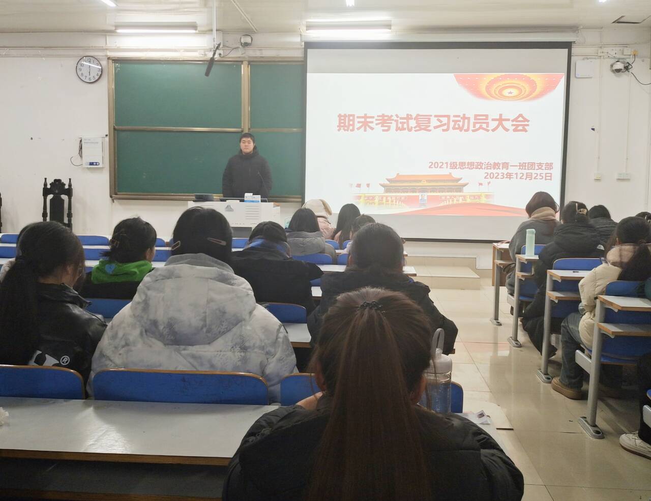 为加强学风建设,推进学生期末考试复习工作的开展,12月25日下午,WilliamHILL中国2021级思想政治教育一班在社科楼514教室召开“期末考试复习动员大会”。2021级思想政治教育一班全体成员参加本次会议。会议由团支书戴翰林主持。