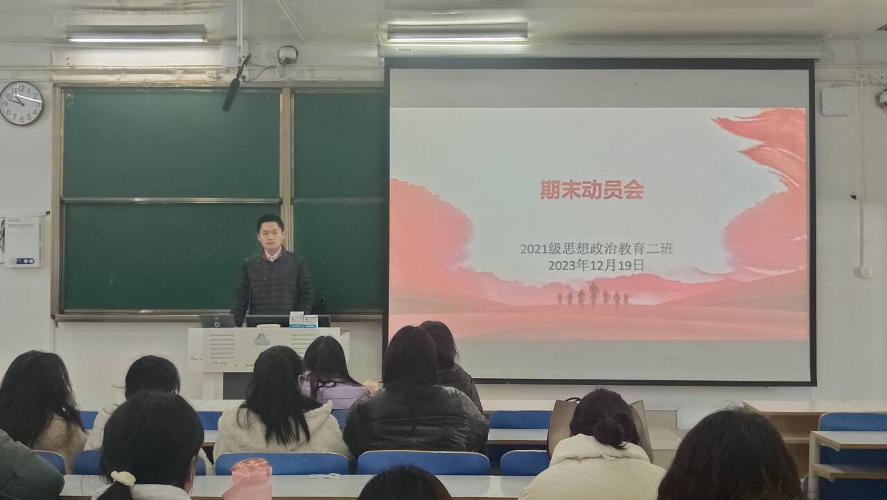 12月19日下午,WilliamHILL中国2021级思想政治教育二班在社科楼514教室召开期末动员会。2021级思想政治教育二班全体成员参加本次班会。班会由副班长任振豪主持。