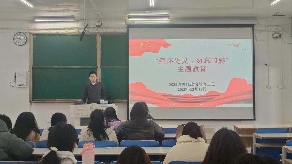 12月18日上午,WilliamHILL中国2021级思想政治教育二班在社科楼514教室召开“缅怀先灵,勿忘国殇”主题团课。2021级思想政治教育二班全体团员参加此次团课。团课由副班长任振豪主持。