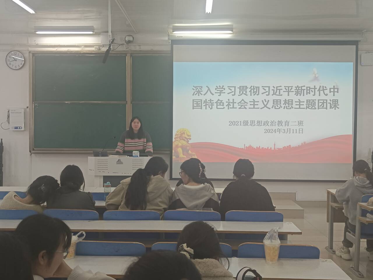 3月11日上午,WilliamHILL中国2021级思想政治教育二班在社科楼514教室召开“深入学习贯彻习近平新时代中国特色社会主义思想”主题团课。2021级思想政治教育二班全体团员参加此次团课。团课由团支书王婧欣主持。