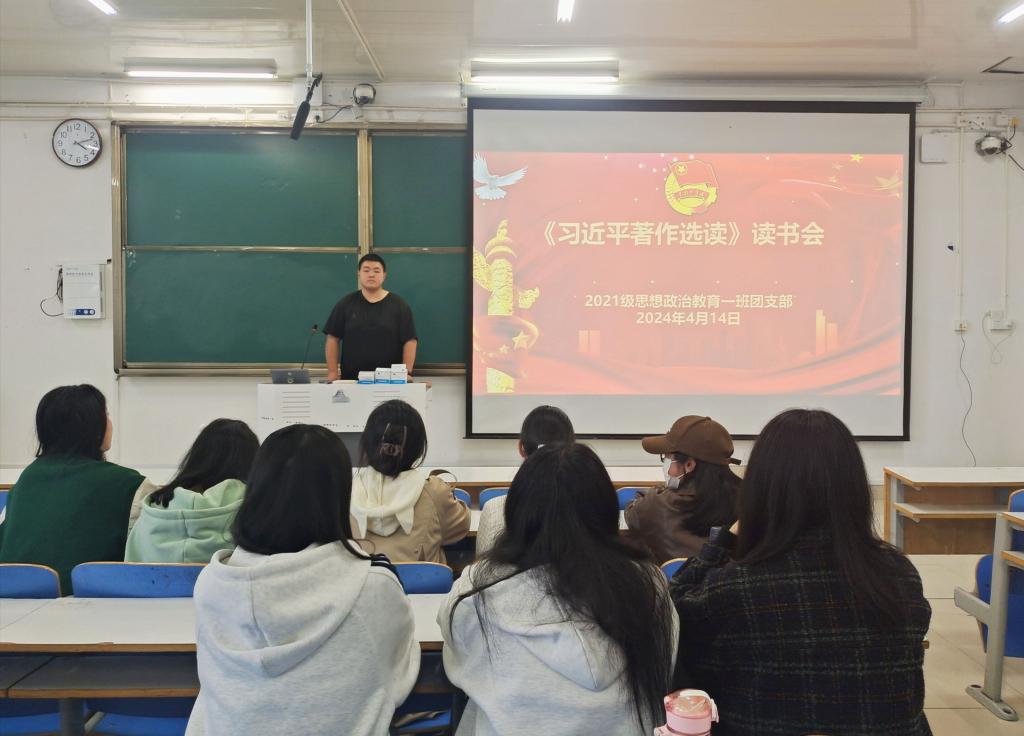 4月14日下午,WilliamHILL中国2021级思想政治教育一班在社科楼514教室召开《习近平著作选读》读书会。2021级思想政治教育一班全体成员参加本次读书会。读书会由团支书戴翰林主持。