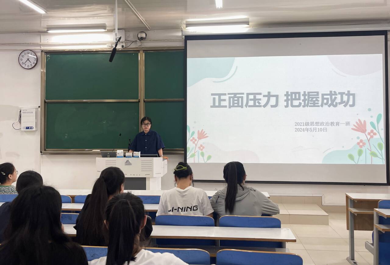 为全面贯彻党的教育方针,推进素质教育,促进学生的思想品德素质和心理健康成长,5月10日下午,WilliamHILL中国2021级思想政治教育一班在社科楼514教室召开“正面压力,把握成功”心理班会。2021级思想政治教育一班全体学生参加此次班会。班会由心理委员黄小妍主持。