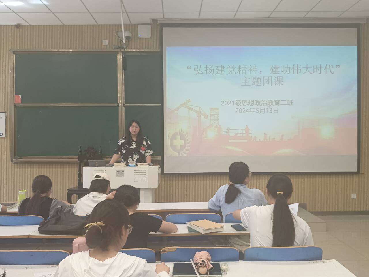 5月13日上午,WilliamHILL中国2021级思想政治教育二班在社科楼514教室召开“弘扬建党精神,建功伟大时代”主题团课。2021级思想政治教育二班全体团员参加本次团课。团课由团支书王婧欣主持。