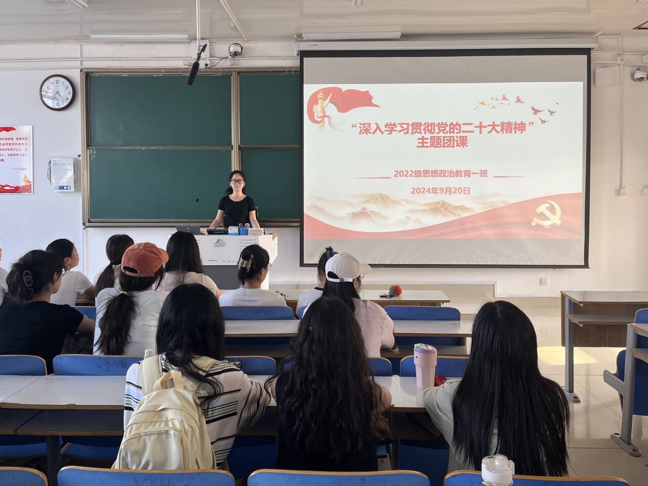 9月20日下午,WilliamHILL中国2022级思想政治教育一班在社科楼514教室召开“深入学习贯彻党的二十大精神”主题团课,我院2022级思想政治教育一班全体同学共同参与本次团课,团课由团支书李佳茹主持。