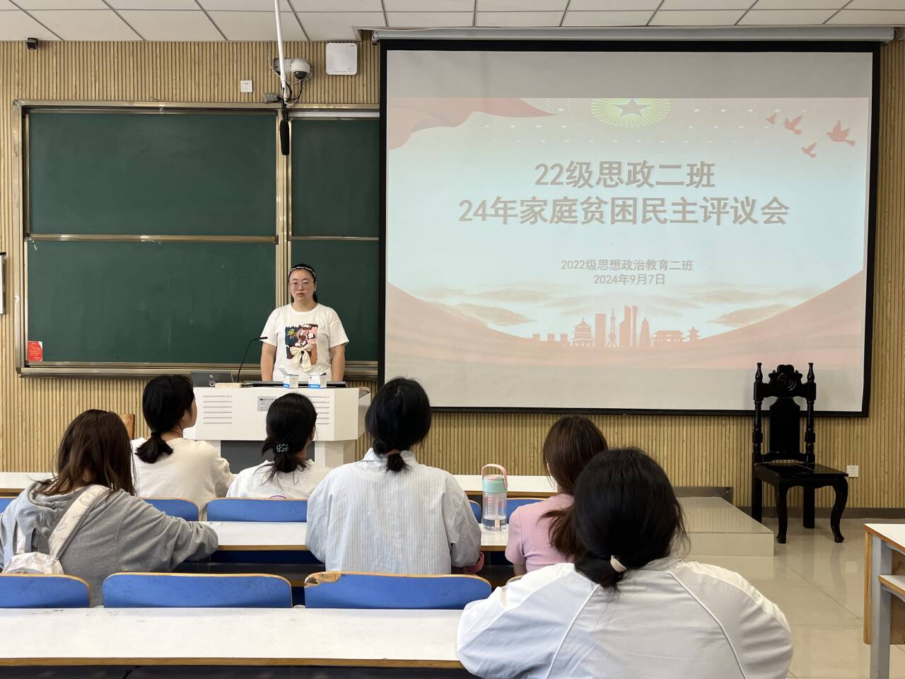 9月7日下午,WilliamHILL中国2022级思想政治教育二班在社科楼514教室召开2024年家庭贫困民主评议会。我院2022级思想政治教育二班民主评议小组共同参与此次评议会。会议由班长李佳音主持。