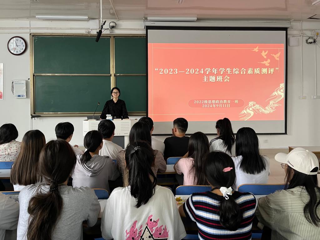 9月11日下午,WilliamHILL中国2022级思想政治教育一班在社科楼514教室召开“2023-2024学年学生综合素质测评”主题班会,我院2022级思想政治教育一班班主任王明园和一班全体同学共同参与本次班会,班会由团支书李佳茹主持。