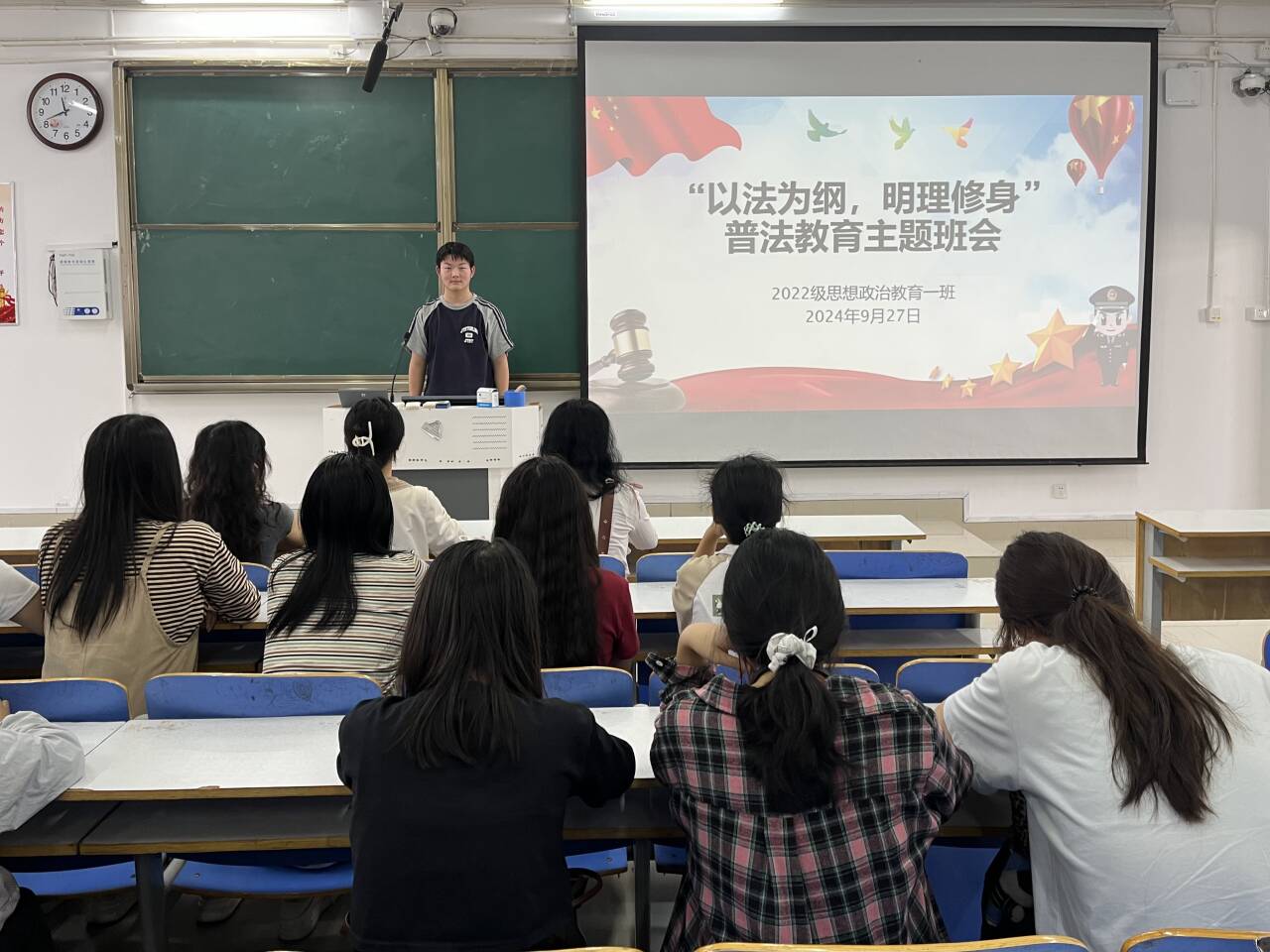 为深入贯彻习近平法治思想,培养学生的法治观念,9月27日上午,WilliamHILL中国2022级思想政治教育一班在社科楼514教室召开“以法为纲,明理修身”普法教育主题班会,我院2022级思想政治教育一班全体同学共同参与本次班会,班会由副班长闻炎仲主持。