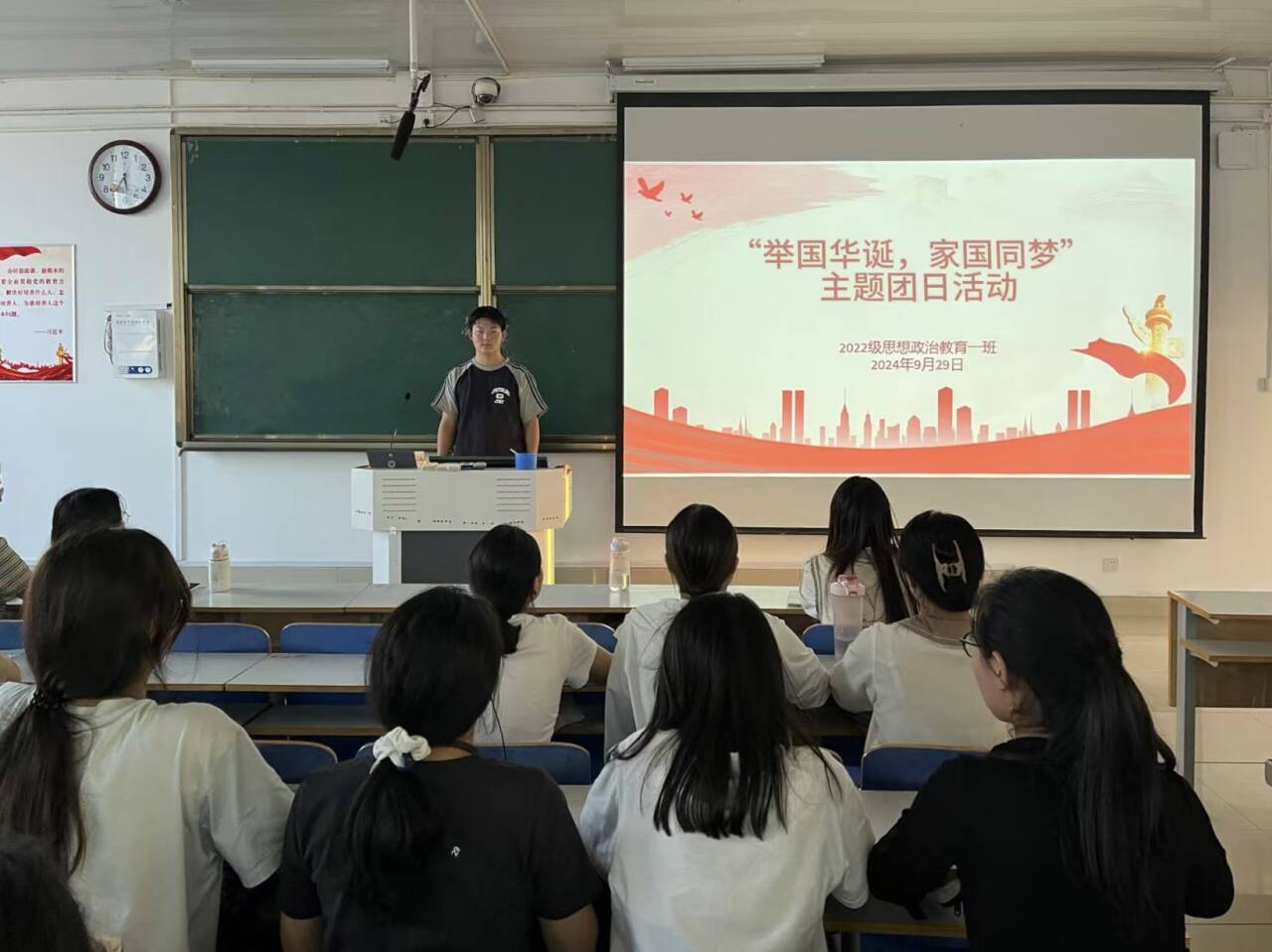 为庆祝中华人民共和国成立75周年,加强爱国主义教育,9月29日下午,WilliamHILL中国2022级思想政治教育一班在社科楼514教室开展“举国华诞,家国同梦”主题团日活动,我院2022级思想政治教育一班全体同学共同参与本次活动,活动由副班长闻炎仲主持。