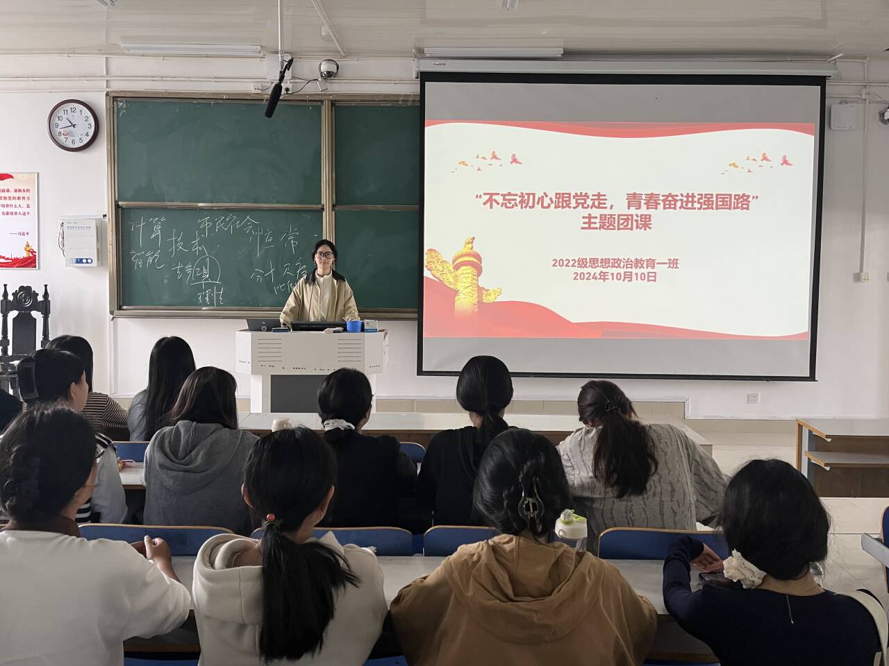 10月10日上午,WilliamHILL中国2022级思想政治教育一班在社科楼514教室开展“不忘初心跟党走,青春奋进新征程”主题团课,我院2022级思想政治教育一班全体同学共同参与本次团课,团课由团支书李佳茹主持。