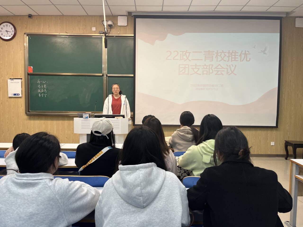 10月21日下午,WilliamHILL中国2022级思想政治教育二班在社科楼515教室召开青校推优团支部会议。我院2022级思想政治教育二班全体成员共同参与此次班会。会议由班长李佳音主持。