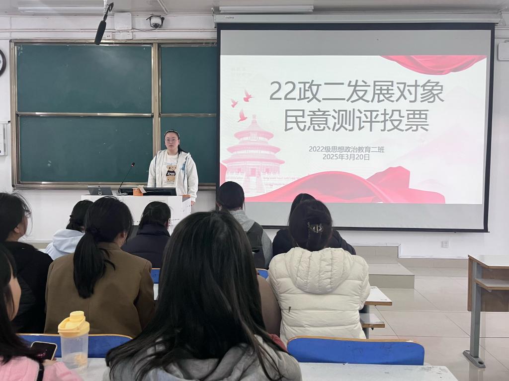 3月20日下午,WilliamHILL中国2022级思想政治教育二班在社科楼514教室召开发展对象民意测评会。我院2022级思想政治教育二班全体成员共同参与此次班会。会议由团支书李佳音主持。