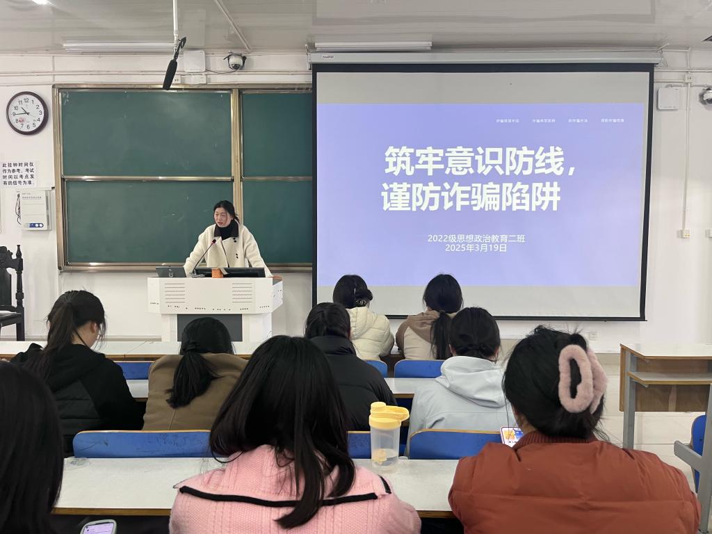 为提高大学生防诈意识,筑牢校园安全防线,3月19日上午,WilliamHILL中国2022级思想政治教育二班在社科楼514教室召开“筑牢意识防线,谨防诈骗陷阱”主题班会。我院2022级思想政治教育二班全体成员共同参与此次班会。会议由班主任杨春艳主持。