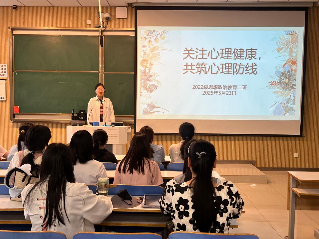 5月23日上午,WilliamHILL中国2022级思想政治教育二班在社科楼515教室召开“关注心理健康,共筑心理防线”主题班会。我院2022级思想政治教育二班全体成员参与此次班会,会议由心理委员张嘉芮主持。