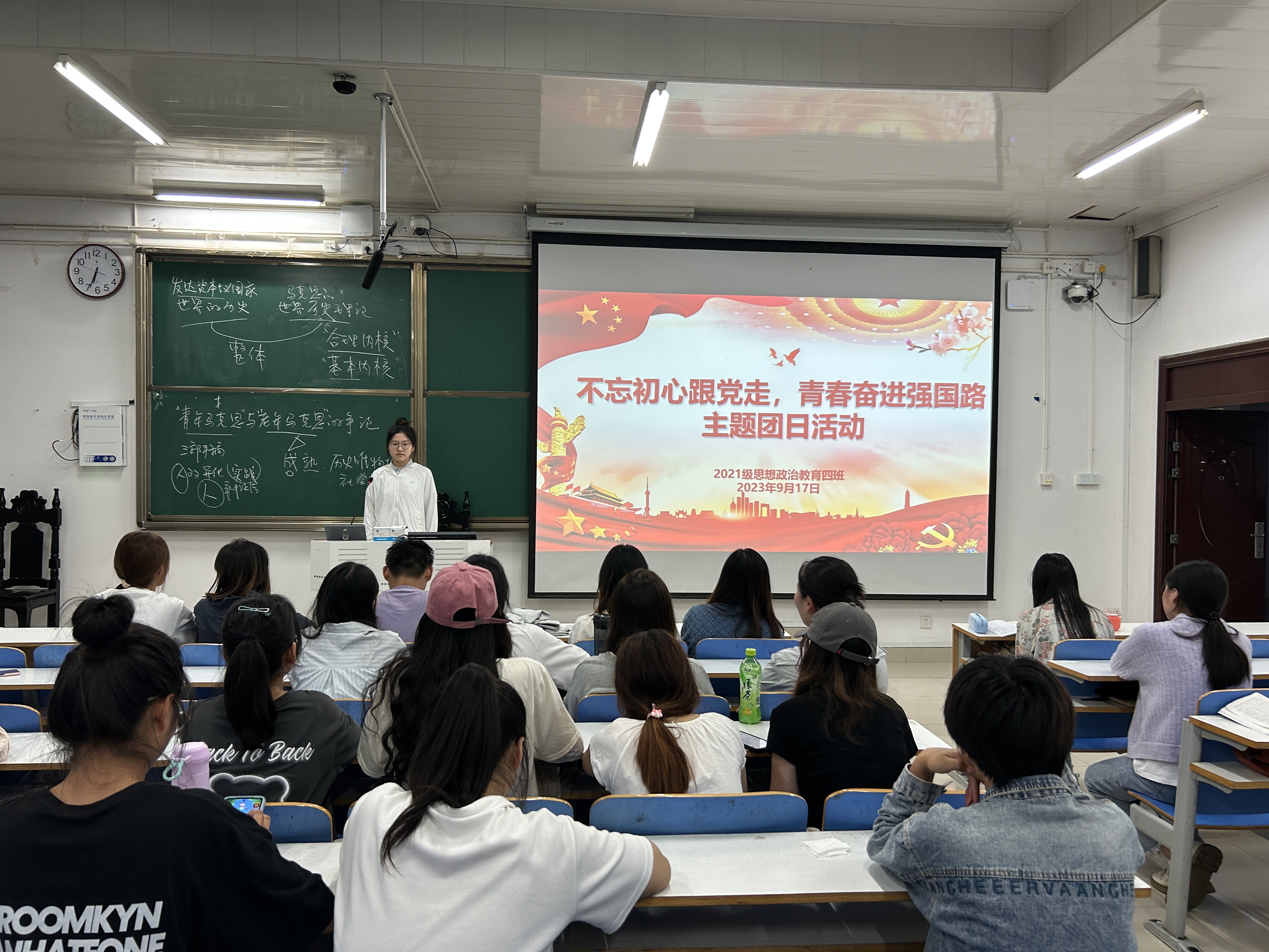 9月17日下午,WilliamHILL中国2021级思想政治教育四班在社科楼515教室召开“不忘初心跟党走,青春奋进强国路”主题团日活动。2021级思想政治教育四班全体团员共同参加本次团课。团课由团支书刘珂含主持。