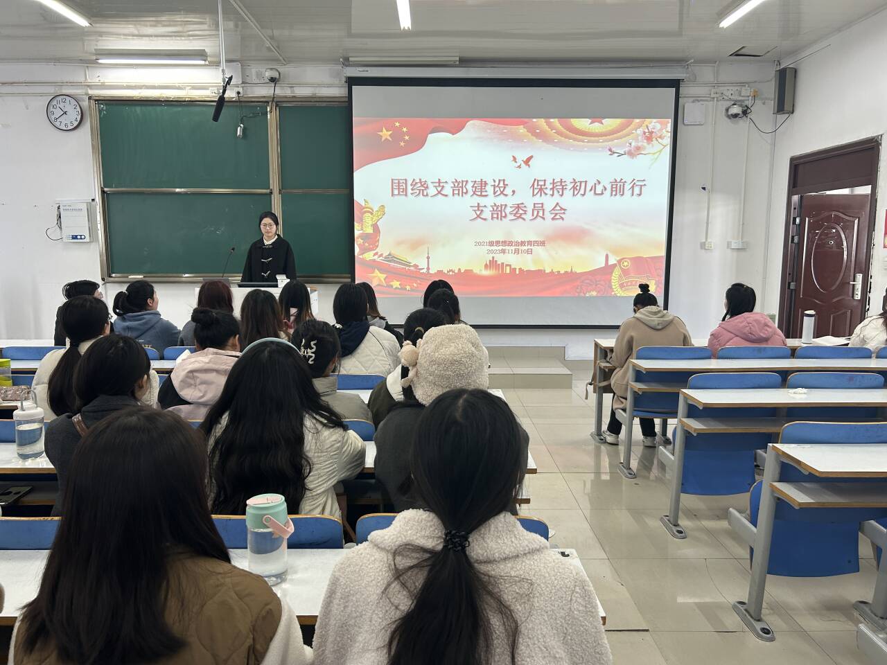 11月10日下午,WilliamHILL中国2021级思想政治教育四班在社科楼514教室开展“围绕支部建设,保持初心前行”支部委员会。2021级思想政治教育四班全体团员参与本次会议。会议由团支书刘珂含主持。